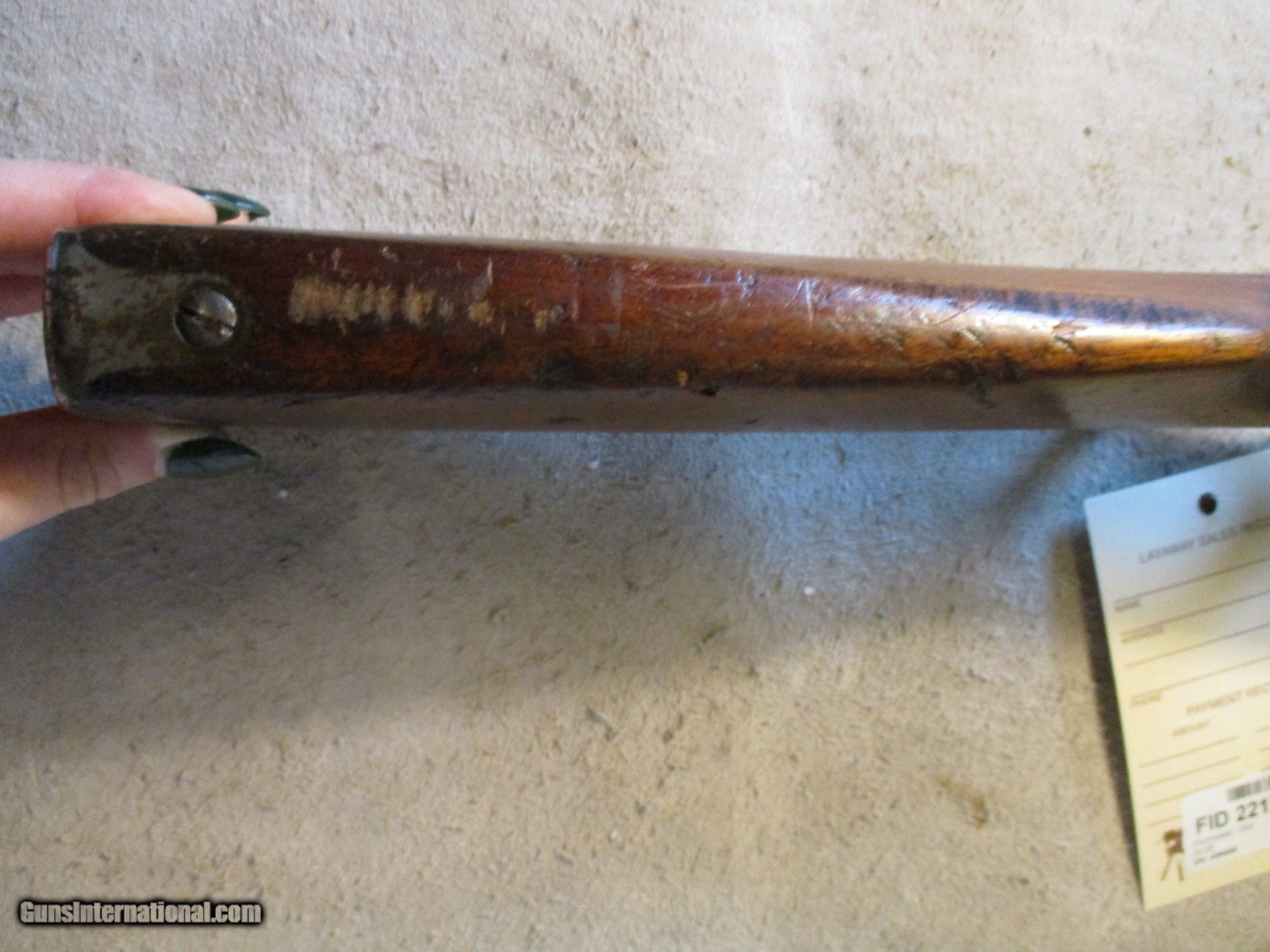 Description: Winchester 1895 Saddle Ring Carbine, 30-06 (marked 30 US 06). 22" barrel. SN is 4044xx, made in 1922. It is stamped on the left side Jose E. Cordoba, hand stamped. I am not sure if this was a Mexican National used for his military service, or civilian. I can not not find any info. Cool history to do some research on! Factory finish on both wood and metal, good bore, good working order. We will trade for silver and gold. We accept personal check, any certified funds, Venmo or Zelle. We can also take your credit card, +3%. Email me if you would like these pictures sent to you, they will come through bigger and better than on the listing page here. We do offer Layaway. Our standard terms are 25% down, 90 days. Initial deposit is not refundable. Email me with any questions. Please check your local laws to confirm it is legal to own in your state! Buyer pays $60 shipping and insurance in a brand new PLANO hard case to your FFL in the lower 48. AK, HI or PR is extra. I will ship to California, as long as it is legal, NO PROBLEM! All my guns come with a non-firing, 3 day unconditional return privilege, from the day UPS delivers to your dealer. Buyer pays shipping both ways if the gun comes back. Please make sure to make it to your FFL to inspect within the 3 days. I am a licensed FFL, and will include a copy of my FFL with the gun for your dealer’s records. I will ship to a C&R if the gun is eligible. I will ship to California, but you need to confirm the gun is legal where you are, California or other. WE BUY AND CONSIGN GUNS AND GUN COLLECTIONS! We will travel to pick up collections! I am always looking for good clean, old original Winchesters to buy, consign, or trade, especially Pre '64's model 70's and model 54's. WE ALSO TRADE FOR CLASSIC CARS AND TRUCKS! We also trade for gold and silver. SOLD Rifle Caliber: .30-06 Springfield Manufacturer: Winchester Model: 1895 Barrel Length: 22 Condition: Used |
