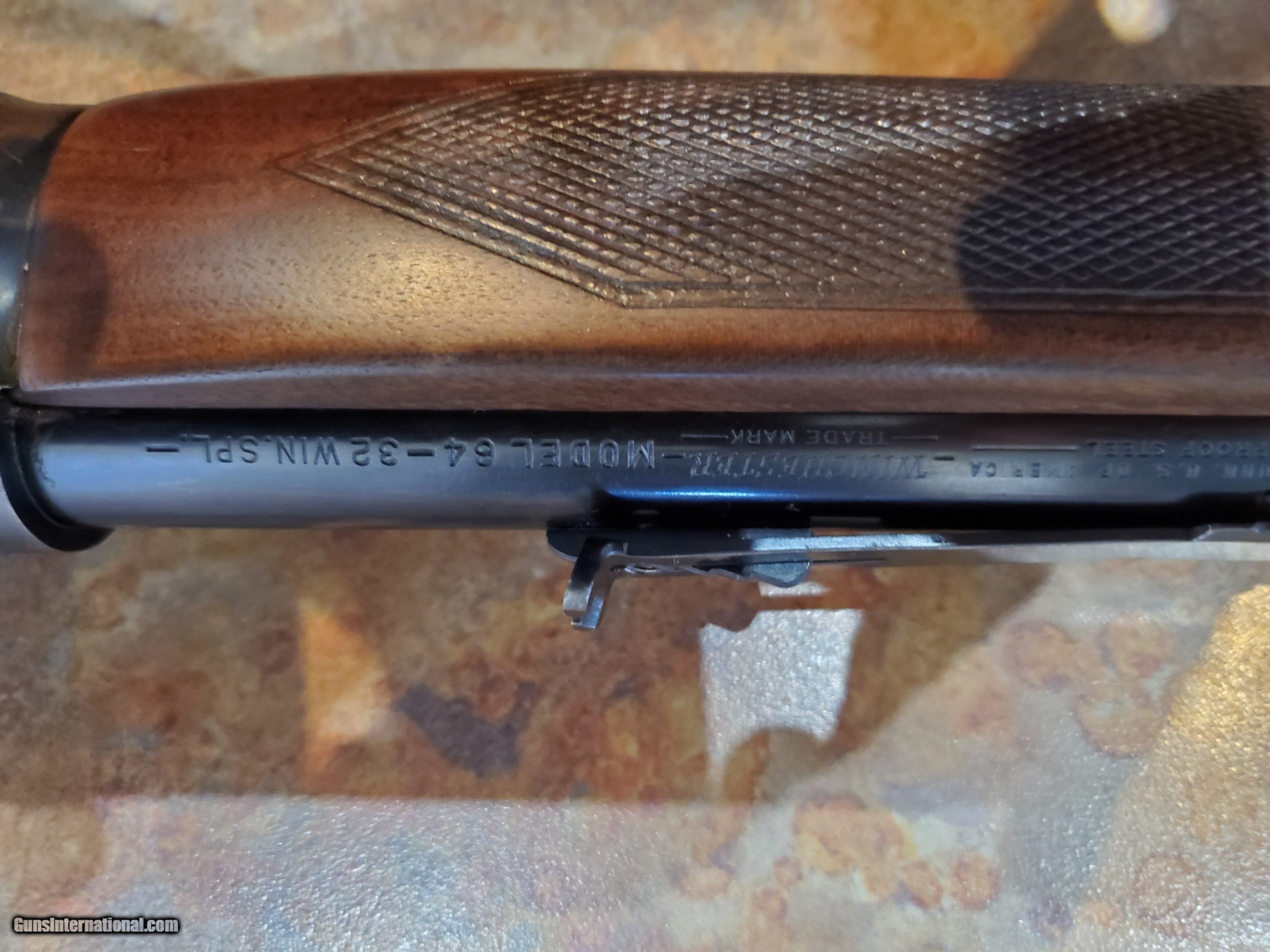 Description: Winchester model 64 deluxe in 95% original condition. 32 special with 24" barrel. Missing front sight hood. Wood is almost perfect with minimal marks on receiver. I believe it is a 1955 manufacturing date. $75 for shipping SOLD Rifle Caliber: .32 Winchester Special Manufacturer: Winchester Model: 64 deluxe Serial Number: 2188036 Condition: Excellent Metal Condition: Excellent Wood Condition: Excellent |