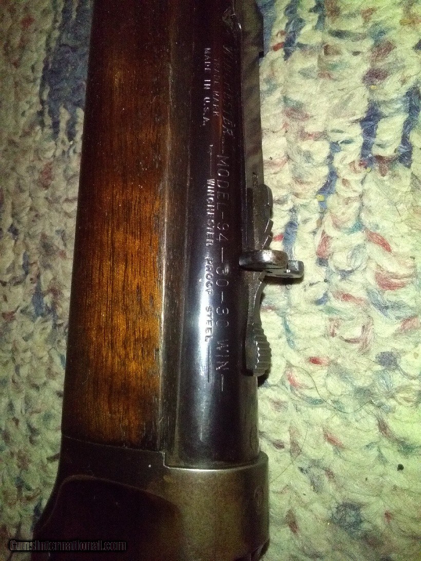 Description: selling a pre 64 model 94 30/30 "carbine" mfd ~1956 sights intact no extra holes for sights or slings, original butt plate, stock has very nice character to the wood grain, decent bluing slightly thinning on receiver, sights intact, some nicks in wood, no cracking at all, good finish on wood, all screws intact, bore is good with sharp grooves. please message call or text 970-209-9517 price plus shipping to lower 48 ground, credit card fee 3%.price reduced SOLD Rifle Caliber: .30-30 Winchester |