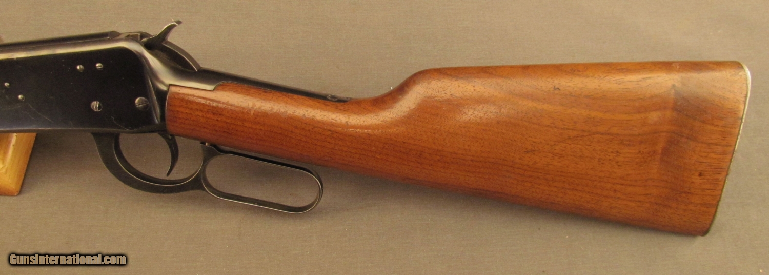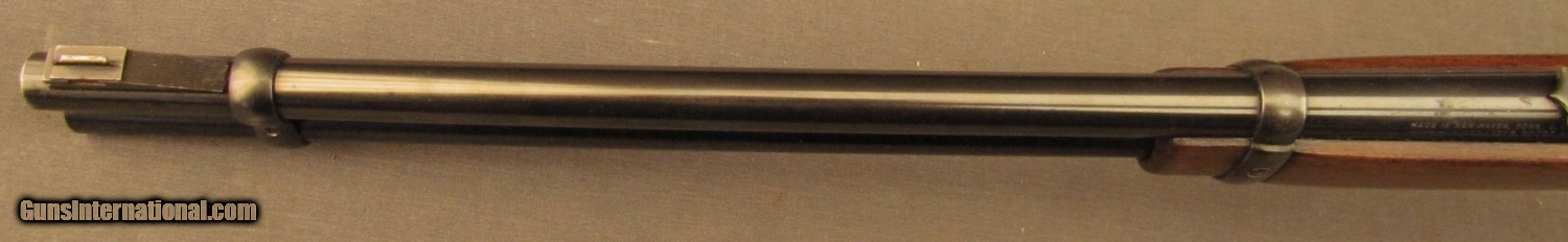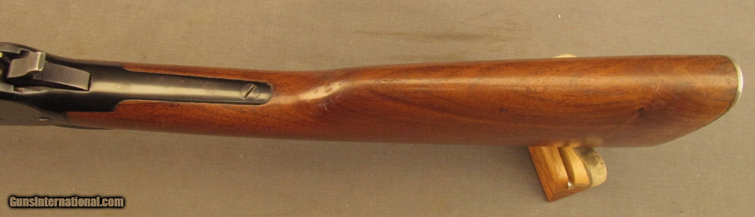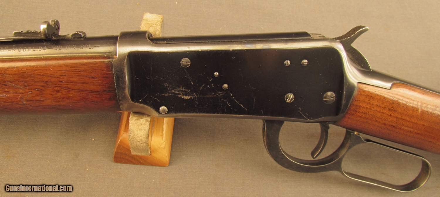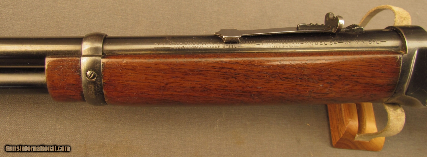 Description: S# 2234325, 32 win spl, 20 inch barrel, bright excellent bore. This 1958 manufactured carbine remains in very good condition with over 90% blue on barrel and mag tube. Receiver shows hand wear on bottom and high edges with a few belt buckle scratches on left side. Screw slots show minor damage. Wood remains sound with typical wear from hunting use. Six notches are proudly filed in right side of wrist. Some extra finish was wiped on wood long ago. Sights are original front is missing hood. A well cared for carbine ready for another lifetime of service. FFL or C+R SOLD Curio/Relic: Yes Manufacturer: Winchester Model: 94 Serial Number: 2234325 Caliber Info: .32 WS Gauge Info: .32 WS |