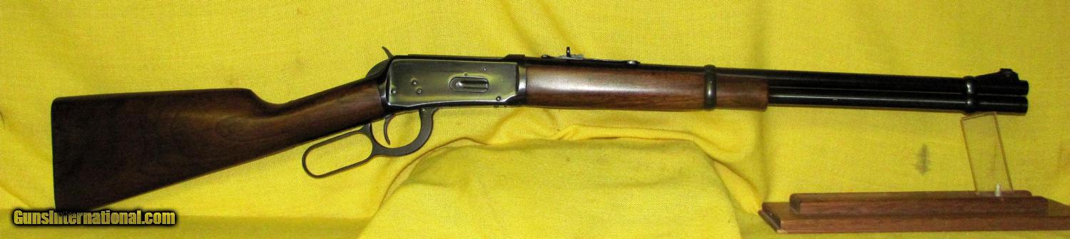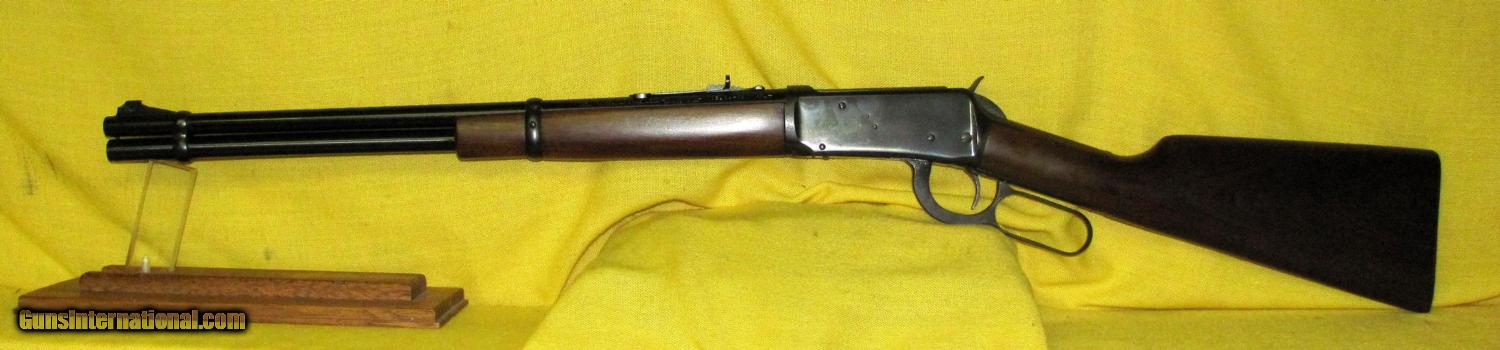 Description: WINCHESTER model 94 (PRE 64) in .32 WINCHESTER SPECI with 20" barrel. Color BLUE. NICE PRE-64 CARBINE, WALNUT STOCK, LONG FOREND, STEEL BUTT PLATE, BORE IS EXCELLENT, 98% ORIGINAL BLUE, WOOD IS IN EXCELLENT CONDITION. Condition 97%. Serial number 1736820. SOLD |