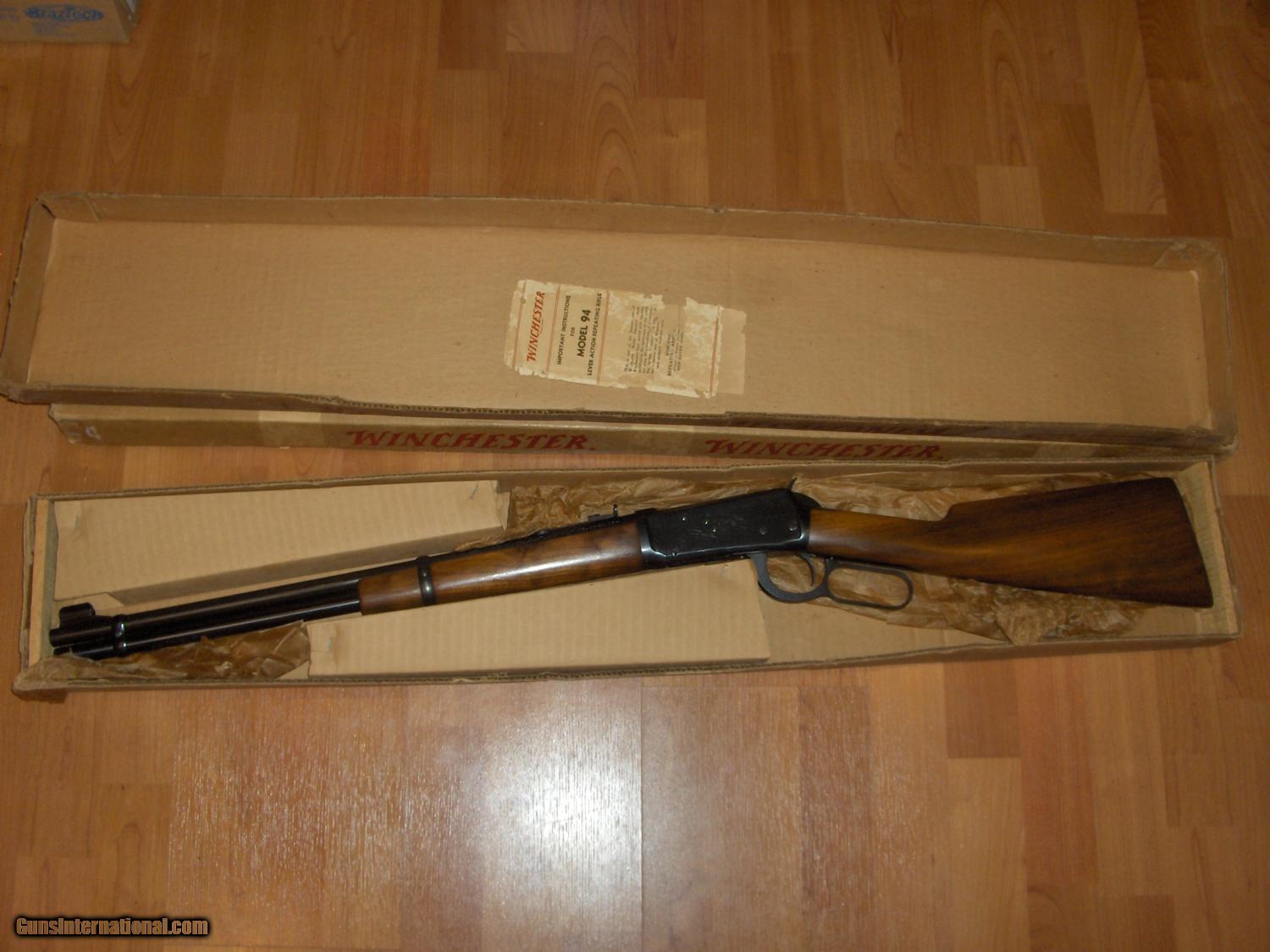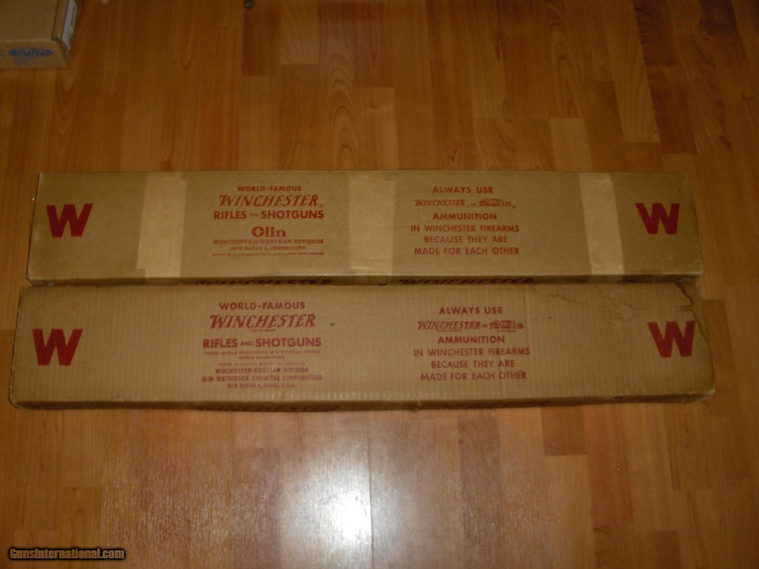Description: 2 Winchester 94 Eastern carbines. DOM 1942--1963. Both are NIB. Original with factory grease coating. Both have literature but 1942 is damaged. Both have brown wax paper inside box.Boxes are solid with correct labels. 1942 gun has long wood. SOLD Curio/Relic: Yes Manufacturer: Winchester Model: 1894 Caliber Info: 30-30 Condition: new Metal Condition: new Wood Condition: new Bore Condition: new |