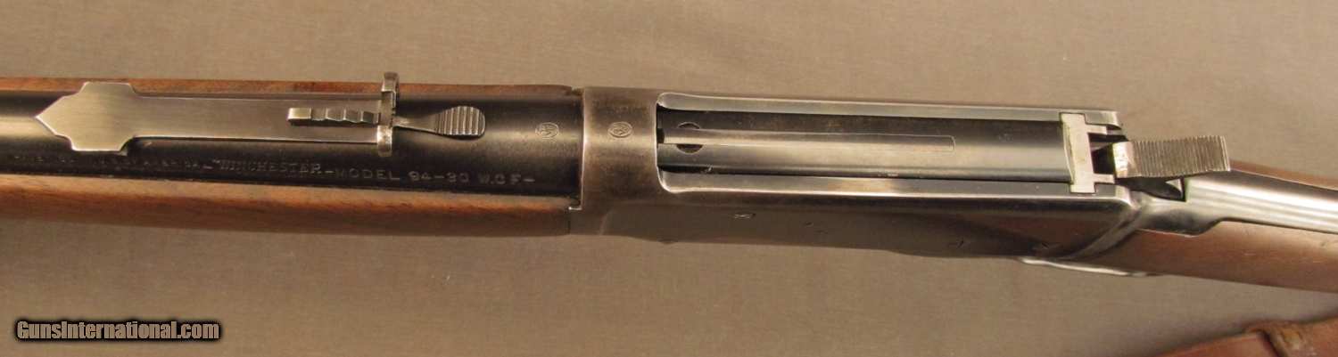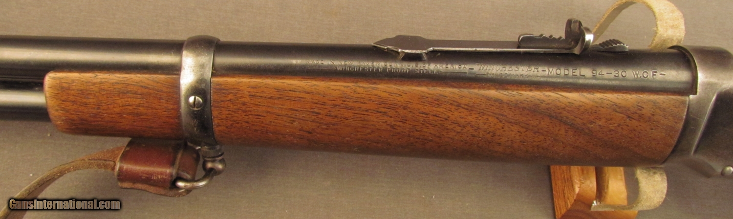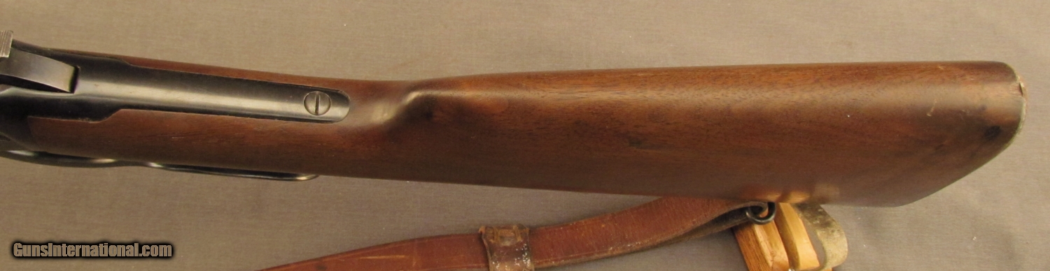 Description: S# 1439924, 30 W.C.F., 20 inch barrel, bright excellent bore. This World War 2 era gun shows wear from hunting with over 95% blue on barrel and mag tube. Receiver has worn to bright and retains 65% blue. Wood looks great with a drip on left side of butt from cleaning solvent long ago. Wood has very few marks but does have a tiny chip at heel. Gun wears a nice 3/4 inch wide leather sling in added keepers. This gun looks like it was carefully used for a lifetime of hunting . it is now ready for a new hunter. FFL or C+R SOLD Manufacturer: Winchester Model: 1894 Serial Number: 1439924 Caliber Info: .30-30 Gauge Info: .30-30 |