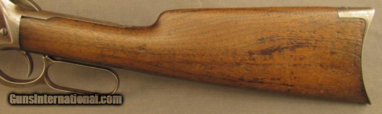 Description: S# 257759, .38-55, 26 inch round barrel, bright very good bore. This 1902 built standard rifle features a semi buckhorn sporting rear sight and sporting front sight. Metal surfaces retain about 35% blue, mostly in protected areas, with fading to brown mixed with areas worn near bright. Barrel bottom is importer marked on right by forend cap. The wood was refinished long ago after a light sanding. Forend shows six notches on left side. Wood is sound with many small marks. This rifle will make a great shooter or hunting gun. FFL or C&R SOLD Curio/Relic: Yes Manufacturer: Winchester Model: 1894 Serial Number: 257759 Caliber Info: .38-55 Gauge Info: .38-55 |