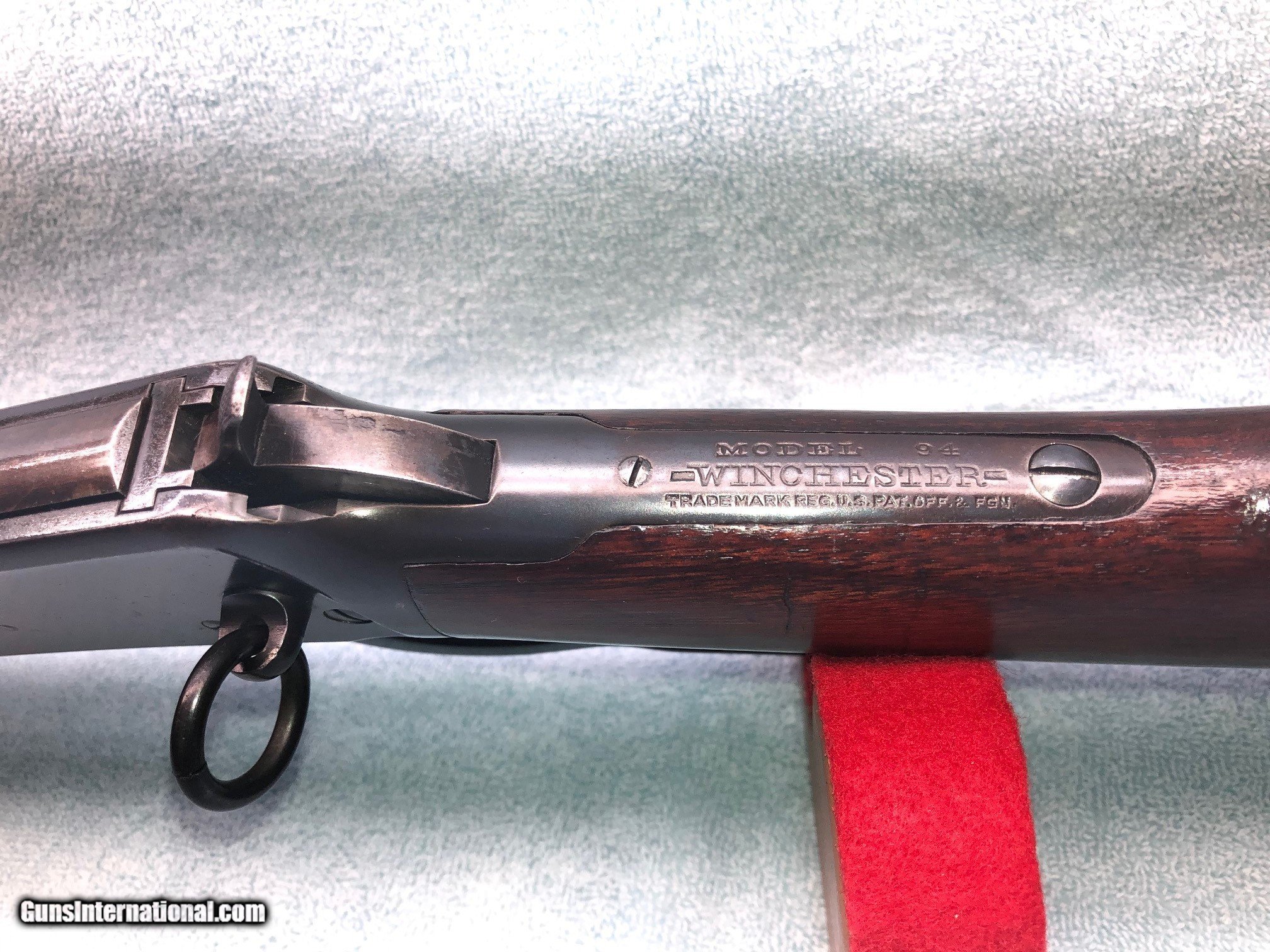 Description: A very fine 94 SRC in desirable 38-55 WCF that retains 92% original blue, with the loss being normal edge wear and the barrel bands. Nice walnut stock with very few hadling marks, original carbine rear sight and post pinned front blade. Mgf 1925 when 18 was dropped from 1894 approximately 950,000 to 1,100,000 serial number range. This is a very fine SRC Carbine with an excellent bore. Be sure to click on " See all Fitzgerald Fine Guns " to view inventory. SOLD Curio/Relic: Yes Serial Number: 960921 |