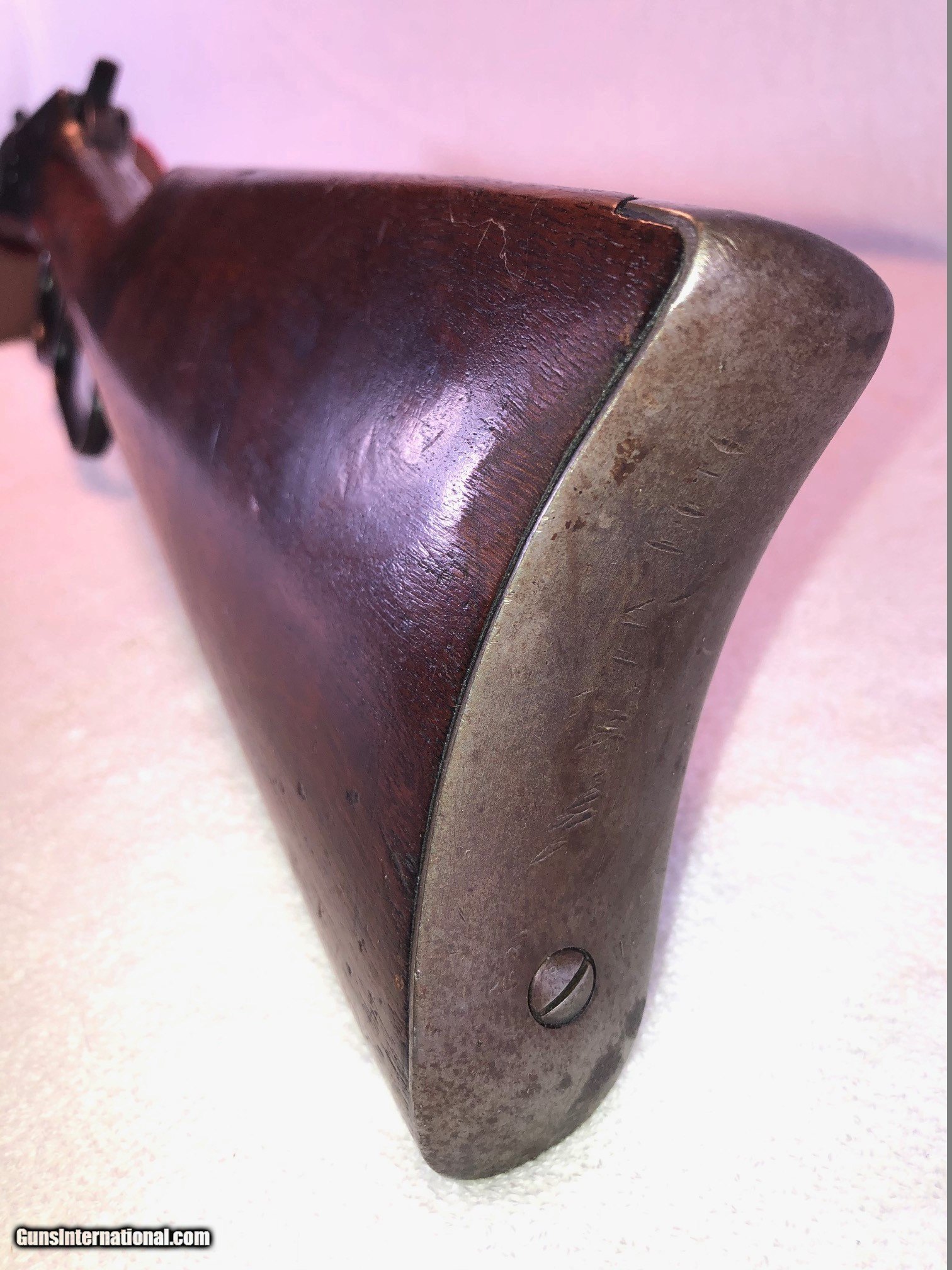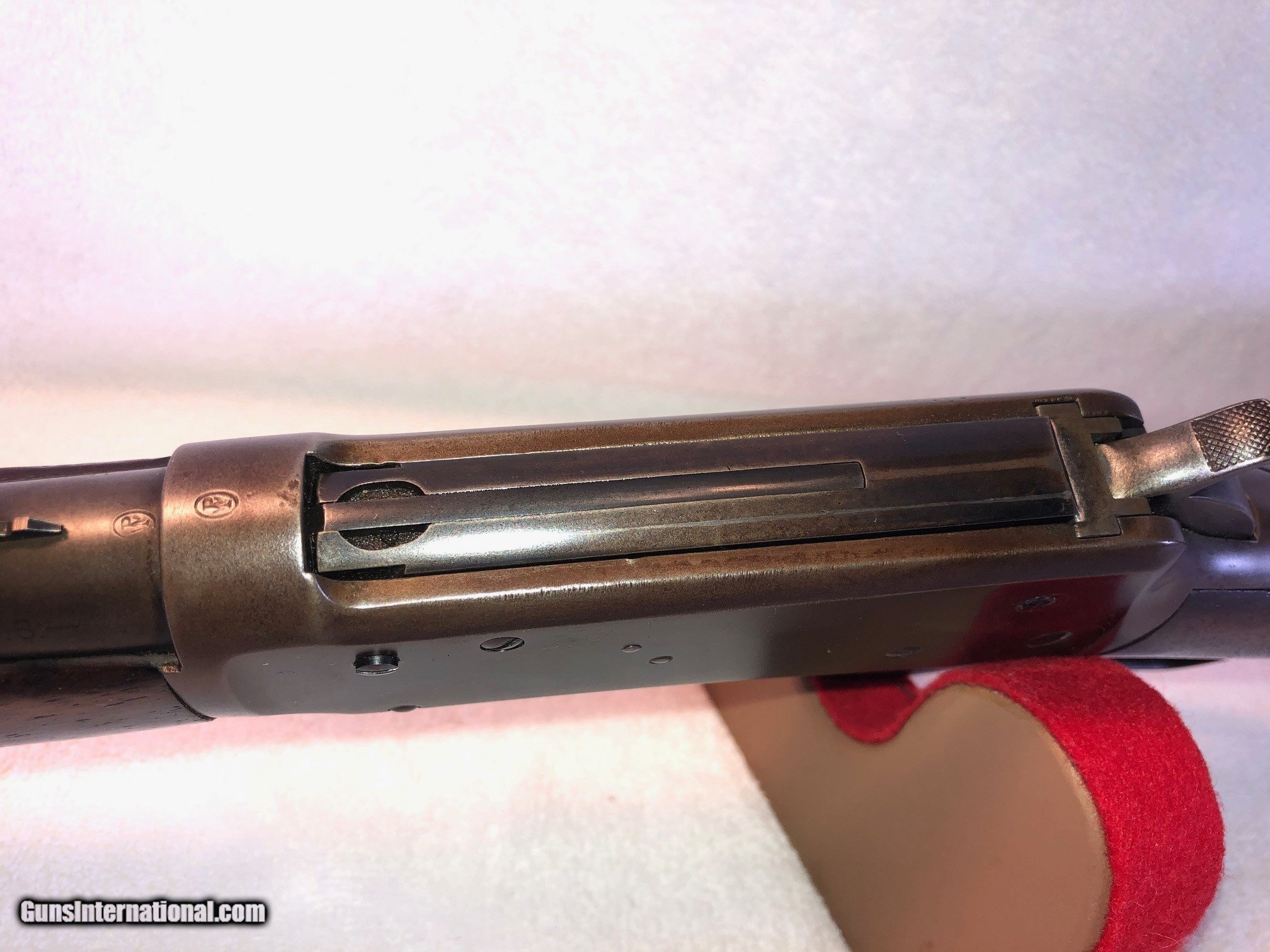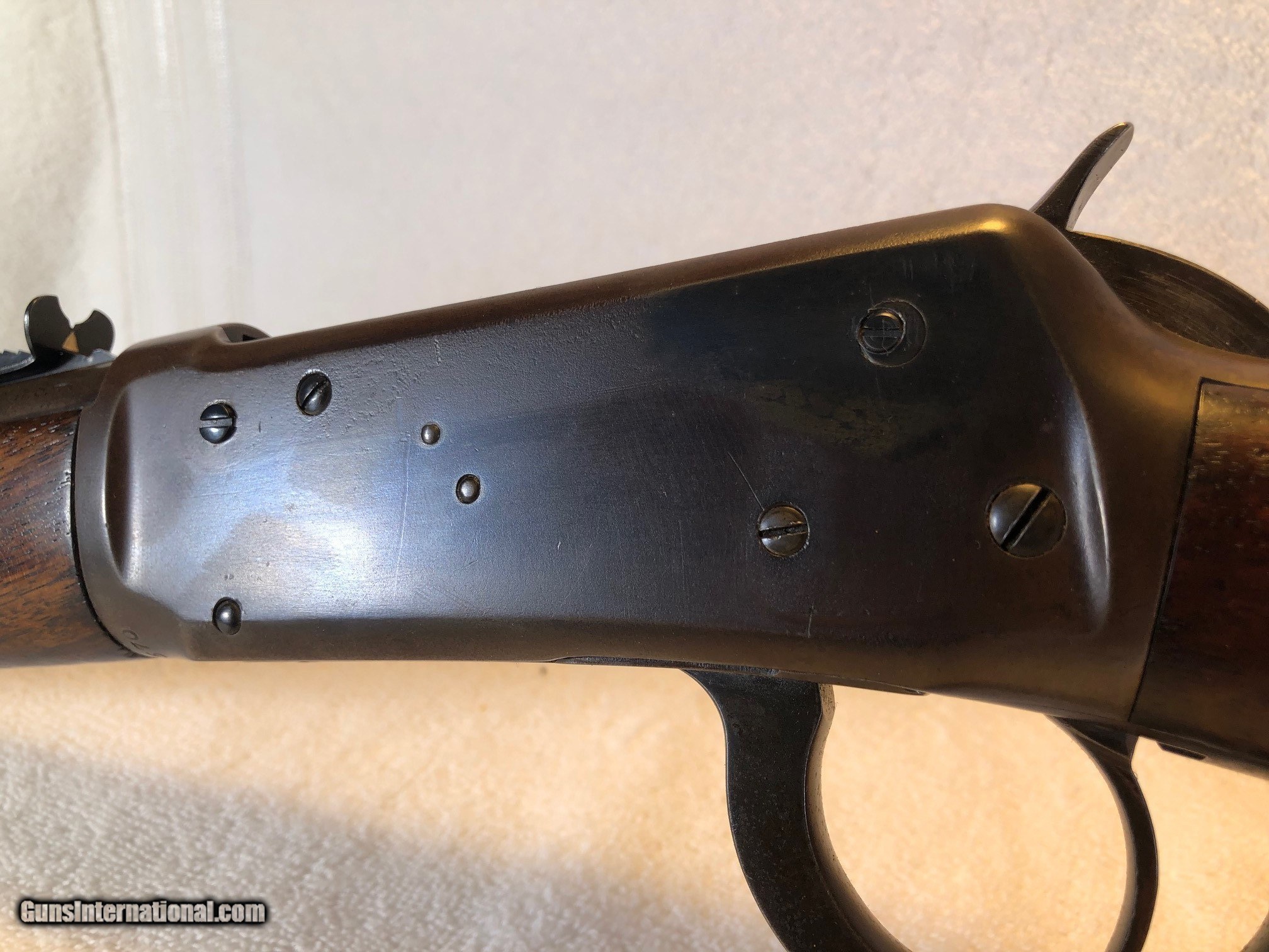 Description: Winchester hunting carbine in 32 WS MFG in 1939-1940, the last of Winchester marked tangs. Excellent, bright shinny bore, good wood, no cracks, marbled rear signt and standard front missing hood. Three extra holes in left hand side of receiver "see last photo" I believe it had a Lyman 21 receiver sight on it at one point. This would be a fine hunting or ranch gun. The new ones are not built like this !!!! SOLD Serial Number: 1198570 |
