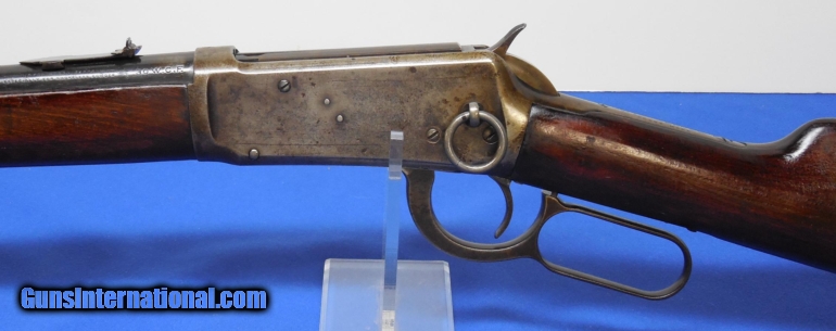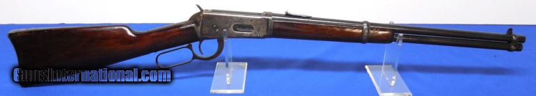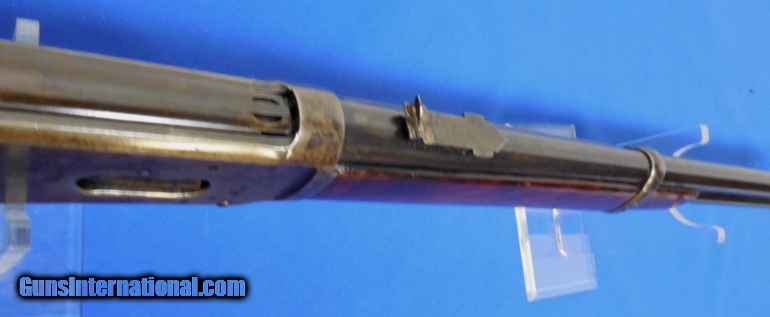 Description: * * * SOLD ON HOLD PENDING FUNDS / Winchester Model 1894 Saddle Ring Carbine, manufactured in 1907, serial #390481, cal. 30 W.C.F., 20" barrel with a fair plus bore with rifling but has shallow pitting its length, the barrel and magazine tube retain 90% original blue turning plum, bands are mostly blue with some gray, the receiver shows some original blue, the majority is a gray pewter patina, with some light oxidation and some very minor peppery pinprick pitting, the lever is mostly patina along with the hammer. The walnut butt stock rates good showing a light cleaning and some minor added finish, this gun features a three position rear carbine style sight with the center sight missing its right side. The saddle ring is present, the overall condition as described is good plus. Inv. # 6-308 SOLD Curio/Relic: Yes |
