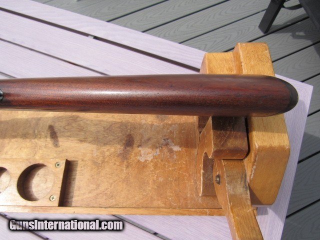 Description: Winchester Model 1894 special order Eastern Carbine (no saddle ring) in caliber 30 WCF aka 30-30 that was factory-fitted with a 2/3 length magazine tube and a shotgun butt with hard rubber butt plate. Butt plate has the early widow's peak top toe. Standard blued finish, plain walnut stocks, plain trigger, typical post front sight, carbine rear sight replaced by a short Marble's full buckhorn sight. Serial number 513621 puts manufacture around 1910, making it pre-64/pre-WWI. CONDITION: Barrel and mag tube 80% original blue with some muzzle wear and some blue loss at breech due to some chemical being spilled on it. Front sight intact. Fore end wood is generally sound, never sanded or refinished, retaining about 80% of the original varnish. Butt stock still tight and proud with no extra holes or other issues, also never sanded or refinished. Original logoed hard rubber butt plate fits well. Action is smooth and the half cock safety functions as designed. Mag tube is tight with no wobble. Receiver retains 50% original thinning blue but also having as spot where some chemical removed the blue. Bore is bright and shiny with sharp rifling, a 9 of 10. Should make a fine shooter/hunter as well as an investment firearm. TERMS: Shipping to the Continental US States will be a flat $50 with insurance optional and additional if requested. We are registered with the CA DOJ and will ship to California! No international sales and no sales to Alaska or Hawaii. Must ship to FFL or C&R license holder, assuming your local laws allow it (sales to New York State buyers will go to an FFL only, no exceptions). 3 day non-firing inspection period; buyer pays return shipping. Payment by bank check, money order or personal check; all major credit cards are accepted with a 4% convenience fee added. Ships by UPS Ground with tracking. Always interested in Civil War items, as well as used long guns and used antique handguns so please contact me if you have anything for sale or trade. 315.251.4799 with questions or concerns. Please keep in mind that I work a full-time job during the week and may not be able to immediately respond to your text, phone, or email message. Thanks for looking! SOLD Curio/Relic: Yes Rifle Caliber: .30-30 Winchester Manufacturer: Winchester Model: 1894 Serial Number: 513261 Barrel Length: 20" round Condition: Very good Metal Condition: Very good Wood Condition: Excellent Bore Condition: Excellent Barrel Type: Nickel steel Action: Lever Triggers: Standard/plain Stock: Walnut Butt Pad: Hard Rubber Sights: Standard Manufacture Date: 1910 Item Location: New York |