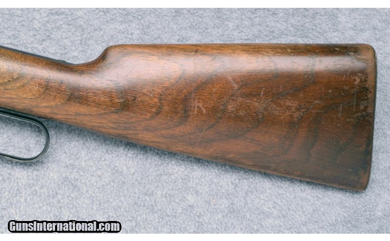 Description: Wood shows thinning finish throughout with light use marks. Blue shows carry wear with some light hunting scuffs. Bore and mechanical function are excellent. Rear sight elevator is missing. SOLD Manufacturer: S/N 135XXXX Caliber Info: .30-30 Win. Metal Condition: Good Wood Condition: Good Bore Condition: Excellent Barrels: 20 Triggers: Original Stock: Uncheckered Walnut Stock Dimensions: 13" LOP Fore End: Uncheckered Walnut Butt Pad: Checkered Steel Weight: 6 1/2 LB Sights: Bead Front - Opren Notch Rear Item Location: Wheeling, WV |
