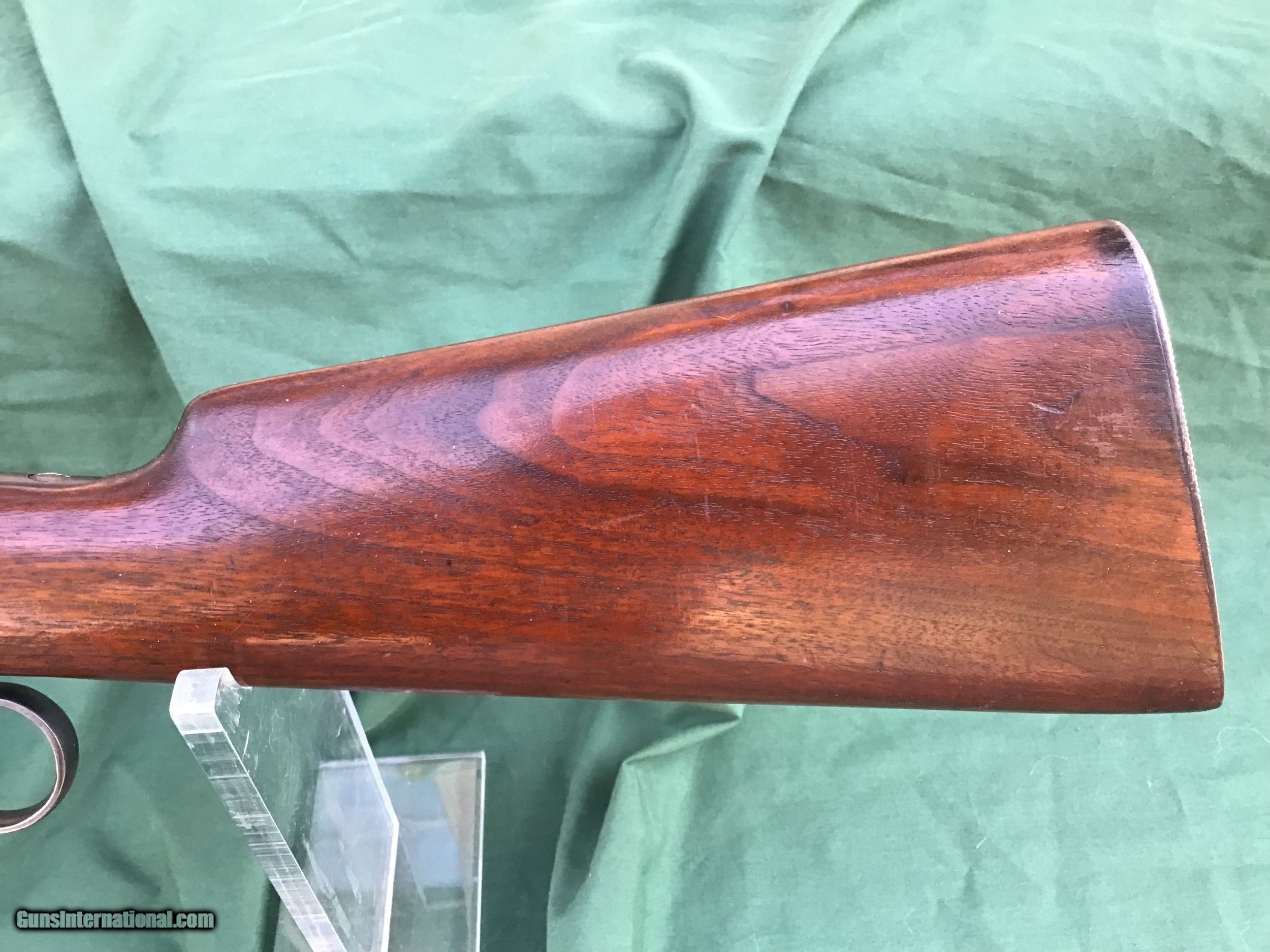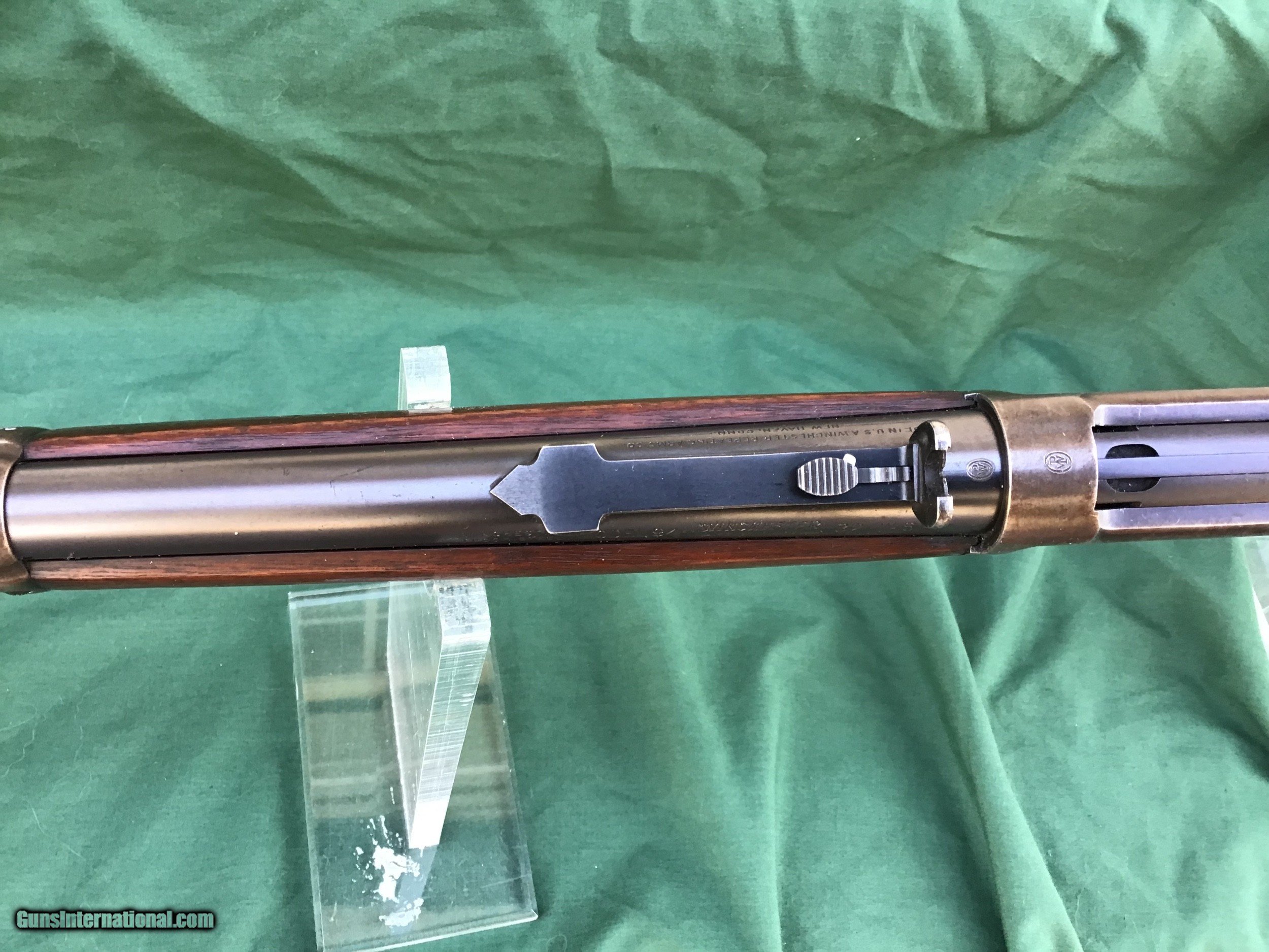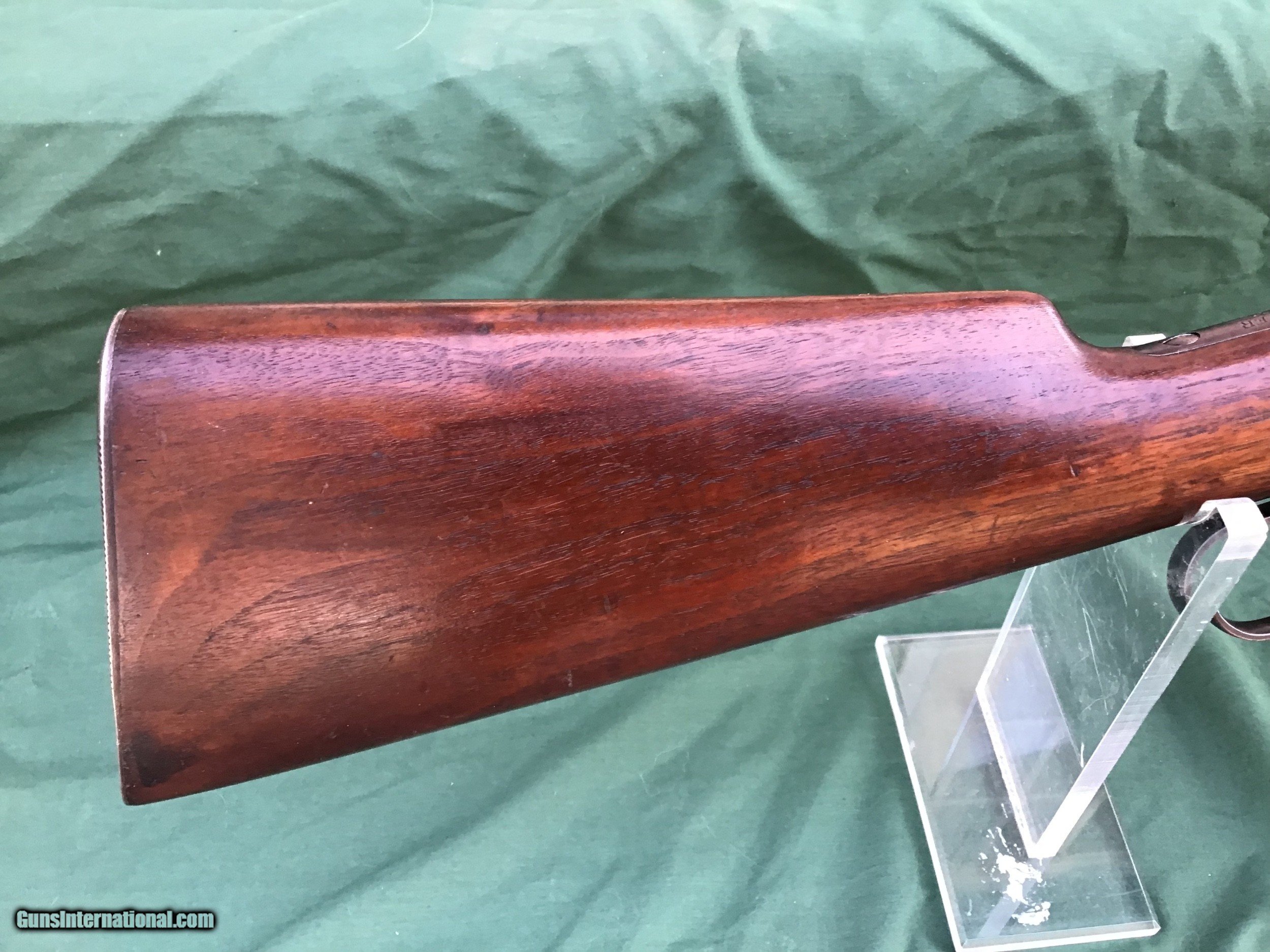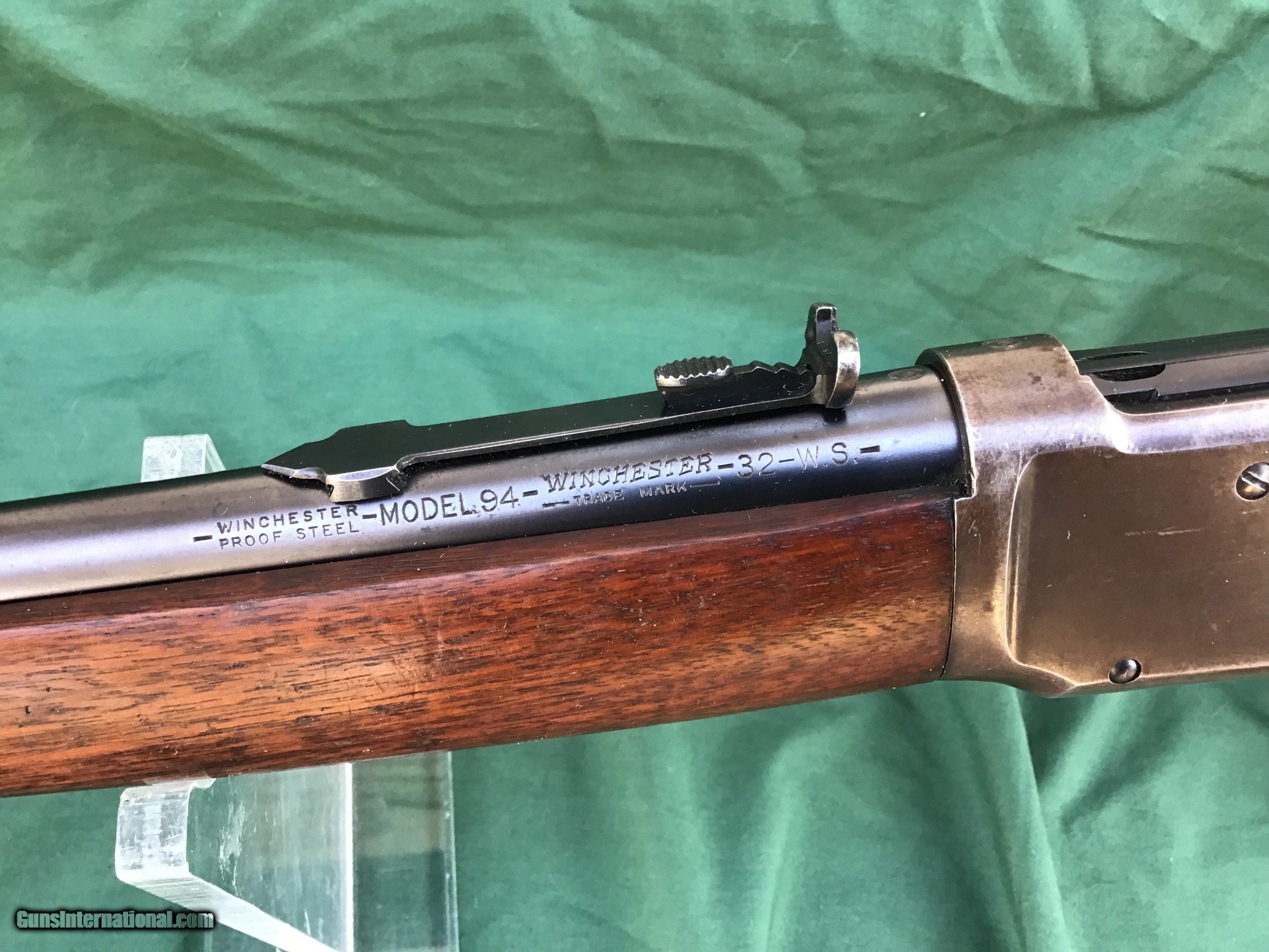Description: Sold Winchester Model 94 Pre War Carbine manufactured in 1941. 32 WS and still has the early 1894 features: 2nd model hammer, upper tang marked, style 55 buttplate, 32 WS caliber marking, and long forend. 20" barrel and full magazine tube retain 90% of their original blue. The bore is in great condition, I will rate it an 8.5 on a scale from 1 to 10. All markings are nice and sharp and the screws are in very nice condition. Original front and rear sights, still has the original factory front sight hood. Receiver retains 80 to 85% original blue. Both forend and buttstock are in very good condition, showing the normal handling marks that you would expect to see from a gun of this vintage. 1940 and 1941 manufactured Model 94's are very difficult to locate because of the small number manufactured during the war years. Must ship to a FFL or Curio and Relics license holder. This firearm as with any other should be checked first by a gunsmith before any attempt is made to fire / operate it. Please feel free to ask questions. SOLD Curio/Relic: Yes |