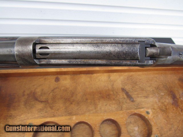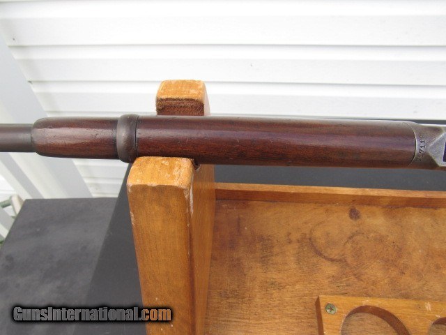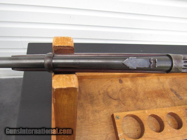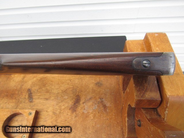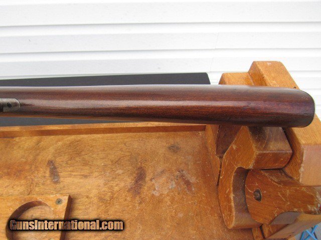 Description: Winchester Model 94 Eastern Carbine (no saddle ring), 20" round barrel with pinned blade front sight, special order 3 leaf express rear sight, full magazine, gumwood stocks, steel carbine butt, plain trigger, blued finish, nickel steel barrel. Serial number 917110 places manufacture in late 1922. CONDITION: Receiver has lost its blue and what color remains is dark staining. Mag tube is a dull plum. Barrel has some fine aged original blue mixed with some bright cold blue that was added after some pitting was cleaned off. Bore is excellent, a 9 of 10, sharp rifling, bright and shiny, just a smidgen of frost forming. Action is crisp and tight with a properly working half cock safety. Stocks are sound with no splits or cracks, a bit shy at the tangs but do not appear to have been cleaned or sanded. Looks like at some point someone converted it to a 2/3 mag carbine as there is a small groove in the bottom of the barrel where the pitting is (from a barrel band), but it does not go all the way through into the bore and will not affect accuracy or function. Worth my asking price in parts. Will make a fine shooter/hunter upon inspection by a competent gunsmith. TERMS: No international sales and no sales to Alaska or Hawaii. FFL or C&R is required for shipping. Note New York State buyers must have the item shipped to a class 1 FFL only. Payment by bank check, USPS money orders, personal check, or GunTab. 3-day non-firing inspection. Buyer pays return shipping. Please have a competent gunsmith check it over if you intend to shoot it. Ships by FedEx Ground with tracking. Thanks for looking and please see my other listings for more great firearms! SOLD Curio/Relic: Yes Rifle Caliber: .32 Winchester Special Manufacturer: Winchester Model: 94 Serial Number: 917110 Barrel Length: 20" round Condition: Good Metal Condition: Fair Wood Condition: Excellent Bore Condition: Excellent Barrel Type: Nickel steel Action: Lever Triggers: Standard/plain Stock: Gumwood Butt Pad: Steel Manufacture Date: 1922 Item Location: New York |
