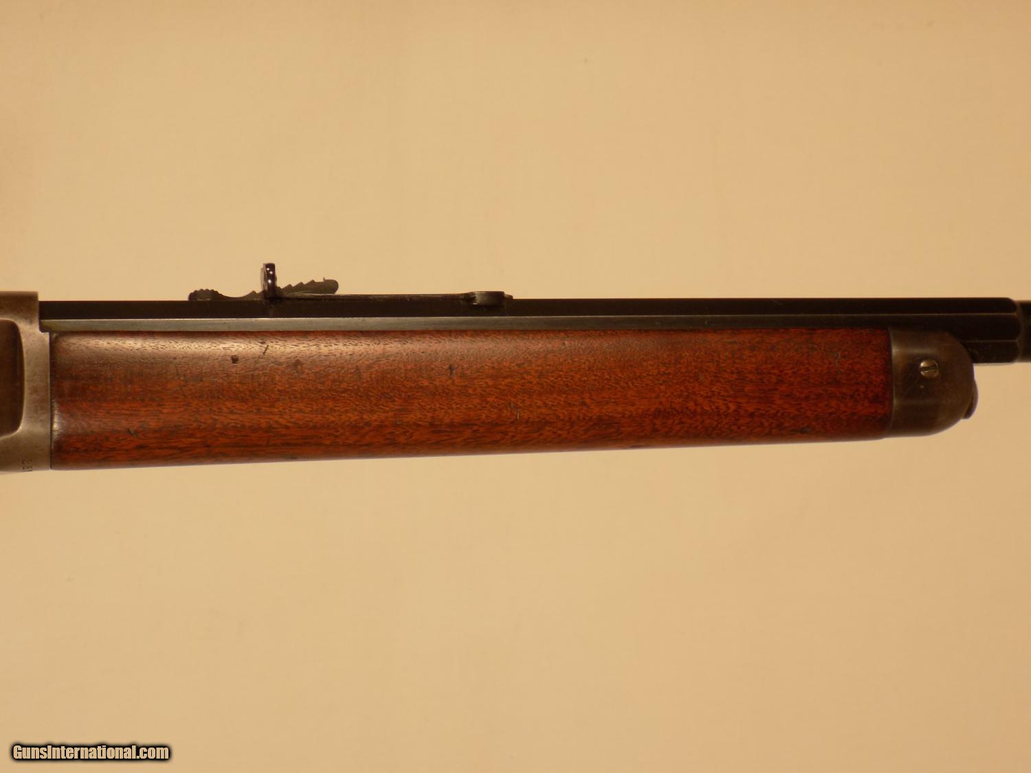 Description: WIN. MODEL 94 SPECIAL ORDER RIFLE, 32 WS, 26" rapid taper half oct. bbl., SN 3577XX, made in 1906, button magazine, Win. shotgun hard rubber buttplate, Lyman tang sight, Beech combination front sight, open rear sight, exc. bore, 99% bbl. blue, 85% blue on the receiver, thinning around the edge, VG to exc. wood. FFL Required. SOLD Curio/Relic: Yes |