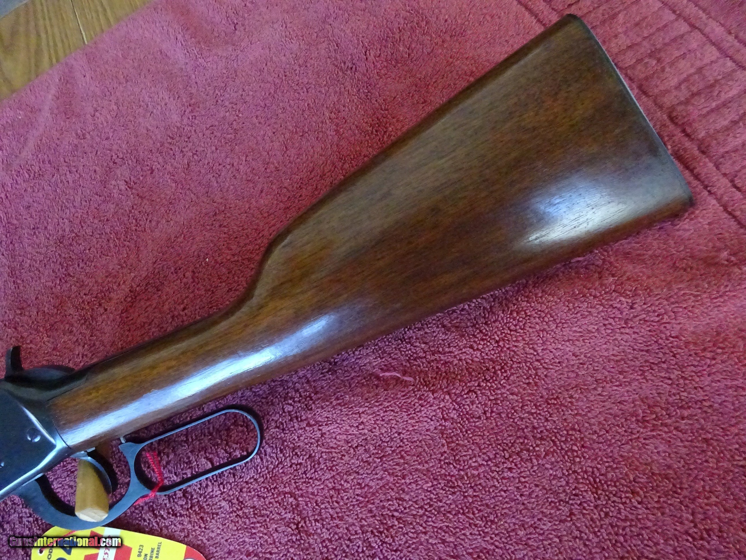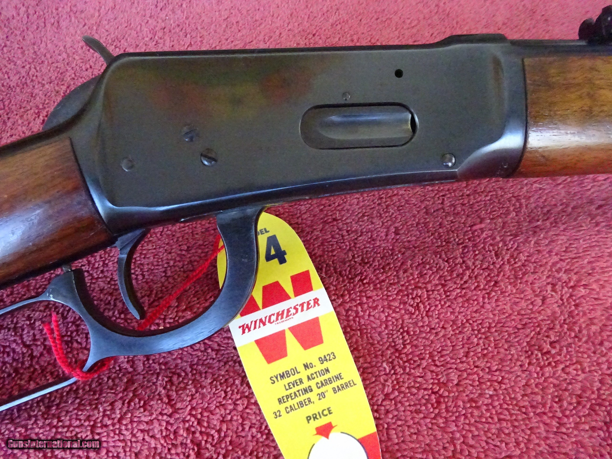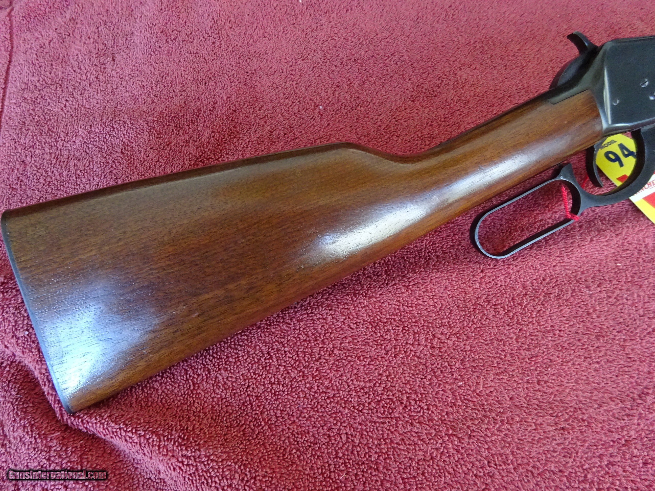 Description: WINCHESTER MODEL 94 CARBINE 32 SPCL. 20" ROUND BARREL, RAMP FRONT SIGHT, STEP ADJUSTABLE REAR SIGHT, 100% BRIGHT ORIGINAL BLUE, MIRROR PERFECT BORE. ALL THE METAL COMPONENTS HAVE 100% BLUE, NO WEAR ANYWHERE. TWO PIECE AMERICAN WALNUT STOCK, EXCELLENT WOOD AND VARNISH FINISH, CHECKERED STEEL BUTTPLATE. MADE IN 1958. INCLUDES ORIGINAL HANG TAG, NO BOX. $1400.00 + $70.00 Insured shipping to an FFL address. Layaway is available. See all Pats gun listings on this site! We also have hundreds of ORIGINAL gun company advertising & memorabilia pieces available for sale on our site SPORTINGCOLLECTIBLES. We have no reprints or reproductions. Email for more information. If you need to call, morning or evening is best, and please note the Seller's Inventory number. SOLD Curio/Relic: Yes |