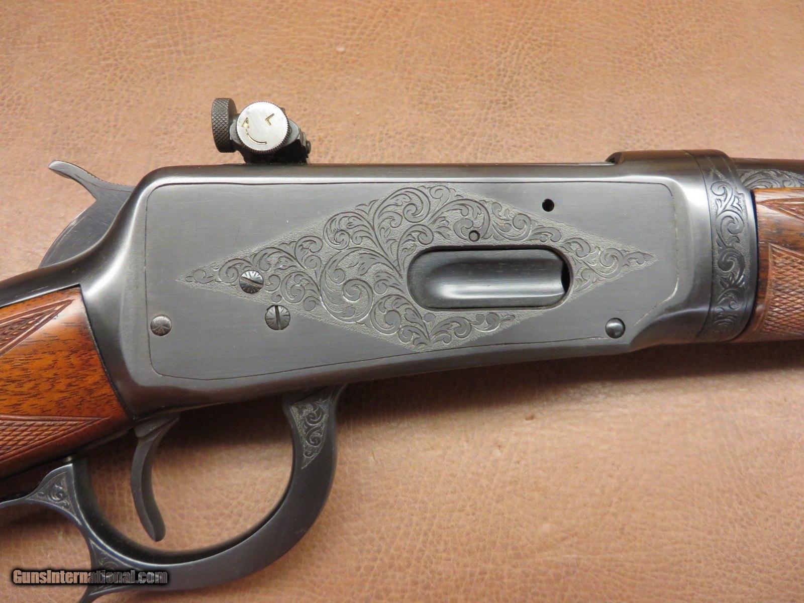Description: Carbine 30-30 made in 1958 converted to a takedown and engraved. 20 inch barrel with original front sight and a Lyman receiver sight. Serial number 2403xxx. Walnut has been checkered and has original checkered steel butt plate. SOLD |