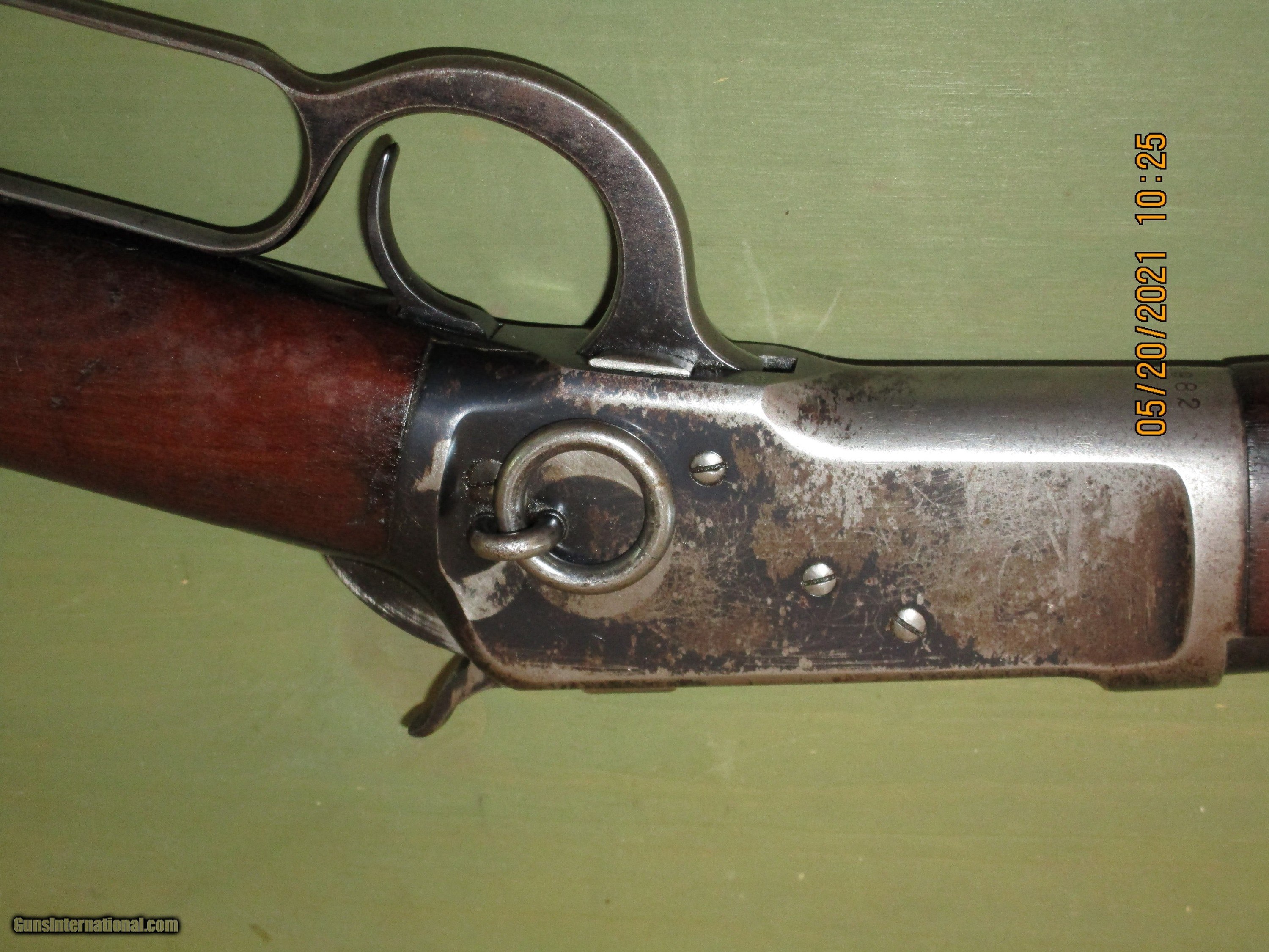 Description: This is a saddle-ring Model 92 rifle in 44 WFC (44-40), with a round 20” barrel and a full magazine tube. The rifle was made in 1928. The rifle's serial number is 991982. The front and rear sights are the original standard sights for this model. The barrel and magazine tube retain about 90% of their original bluing. There are some dings and light scratches in the metal. The receiver and front and center barrel bands have lost most of their bluing. The wood on the gun is in very good condition with some dings and light scratches. The bore is clean showing defined lands and grooves. The lettering is sharp and legible. The action on this rifle is excellent. Call or write to discuss shipping and insurance options. Estimated shipping and handling is $60. . SOLD Rifle Caliber: .44-40 Winchester Manufacturer: Winchester Model: 92 Condition: very good |