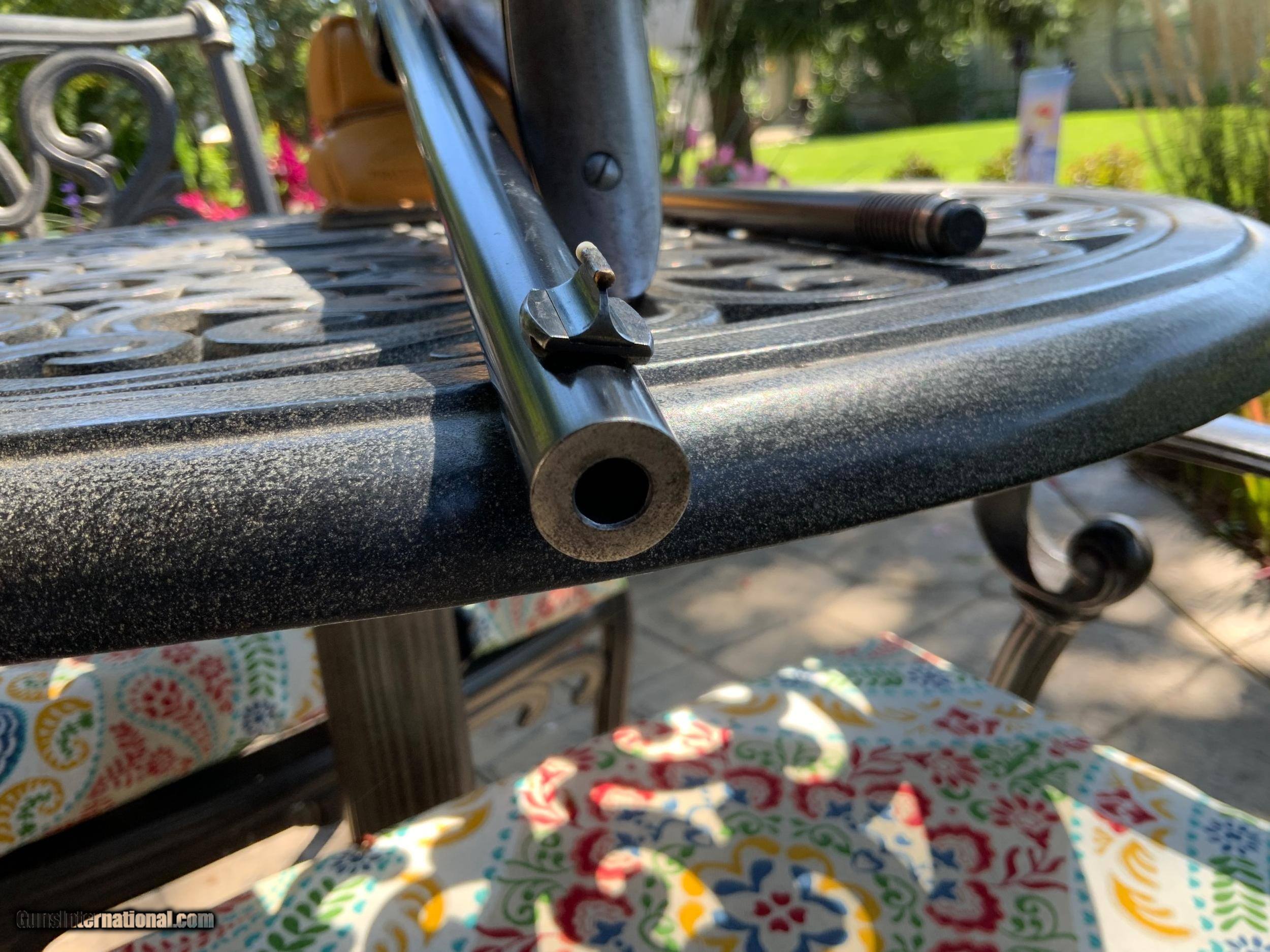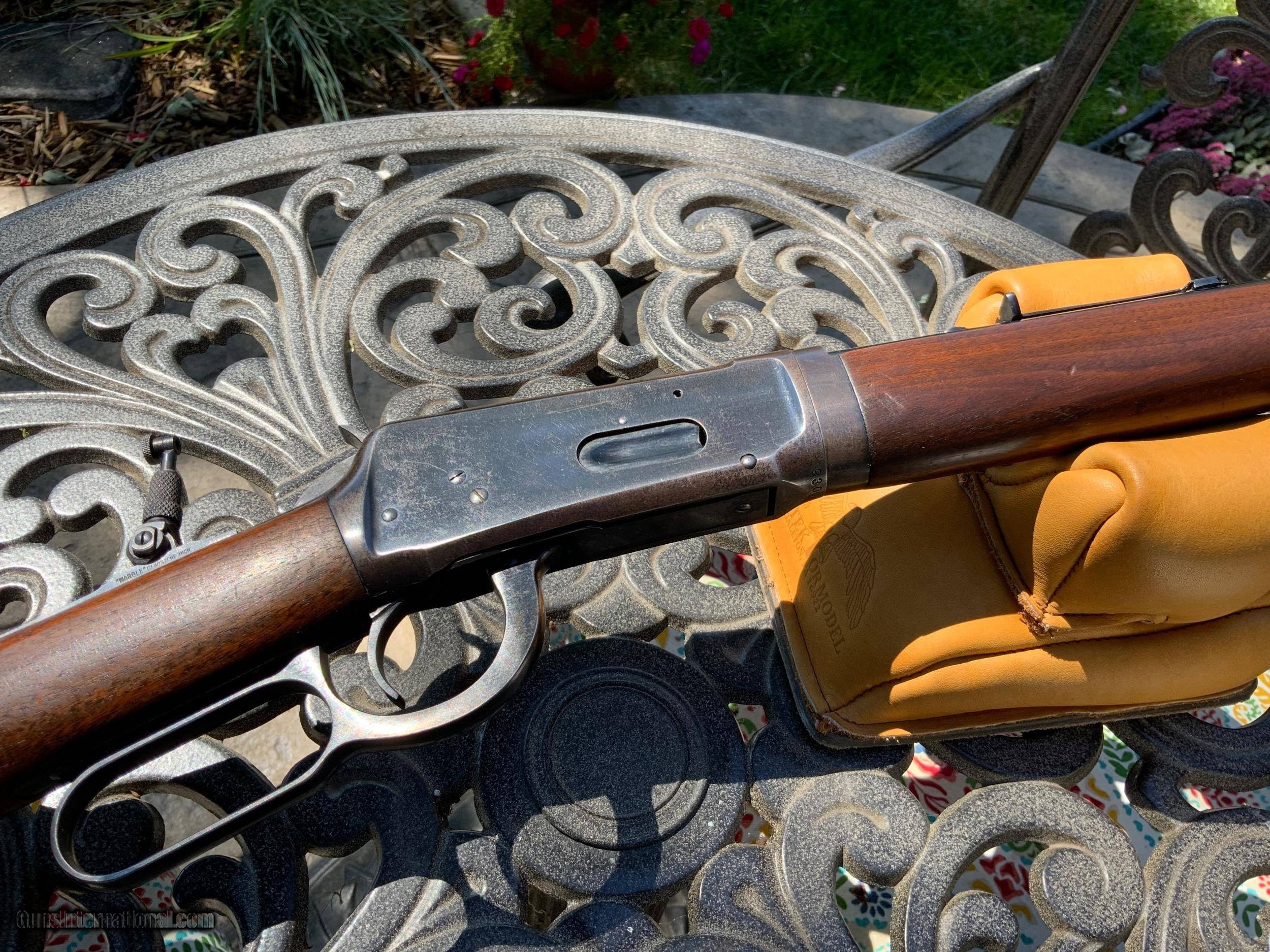 Description: PENDING SOLD Up for sale is a Winchester 1894 take down that remains in exceptional factory original condition.I am positive that the Marble sights are factory original, the blue under the tang sight is 100% and the front flip sight has a ivory bead.the bore is perfect.have a CODY firearms search sheet on this rifle that I can send to you upon request. SOLD Rifle Caliber: .32 Winchester Special |