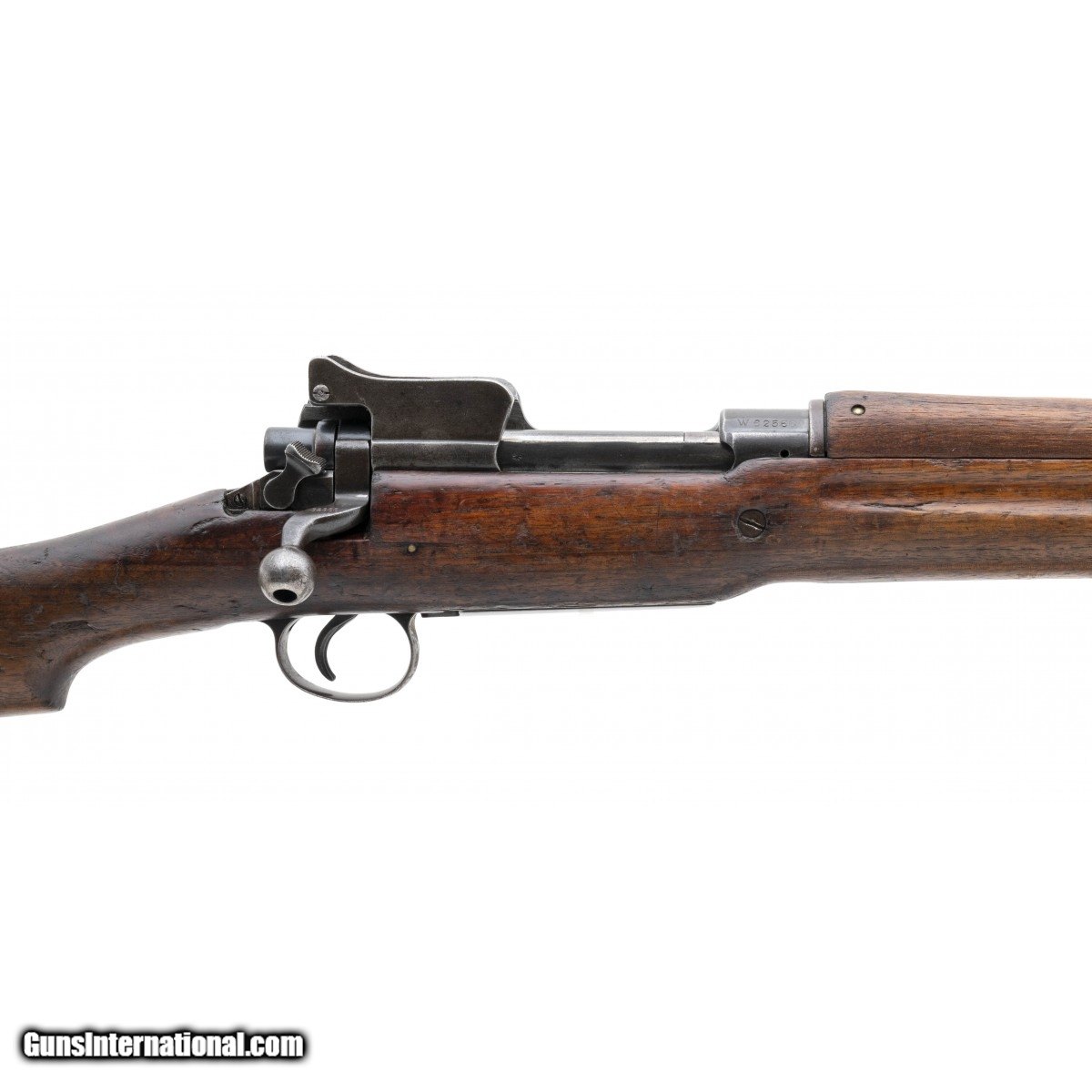 Description: " Serial No. W62566, 26"" round barrel chambered in .303 British. Scarce Winchester Contract Patter 14 bolt action rifle. Bore is bright with strong rifling. Original Bluing is starting to turn, Wood shows usage and handling wear with a small crack noted on the right side by the bolt handle. Action functions correctly. SOLD Curio/Relic: Yes |
