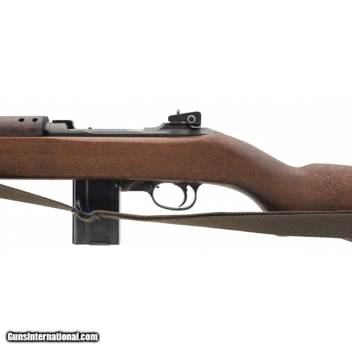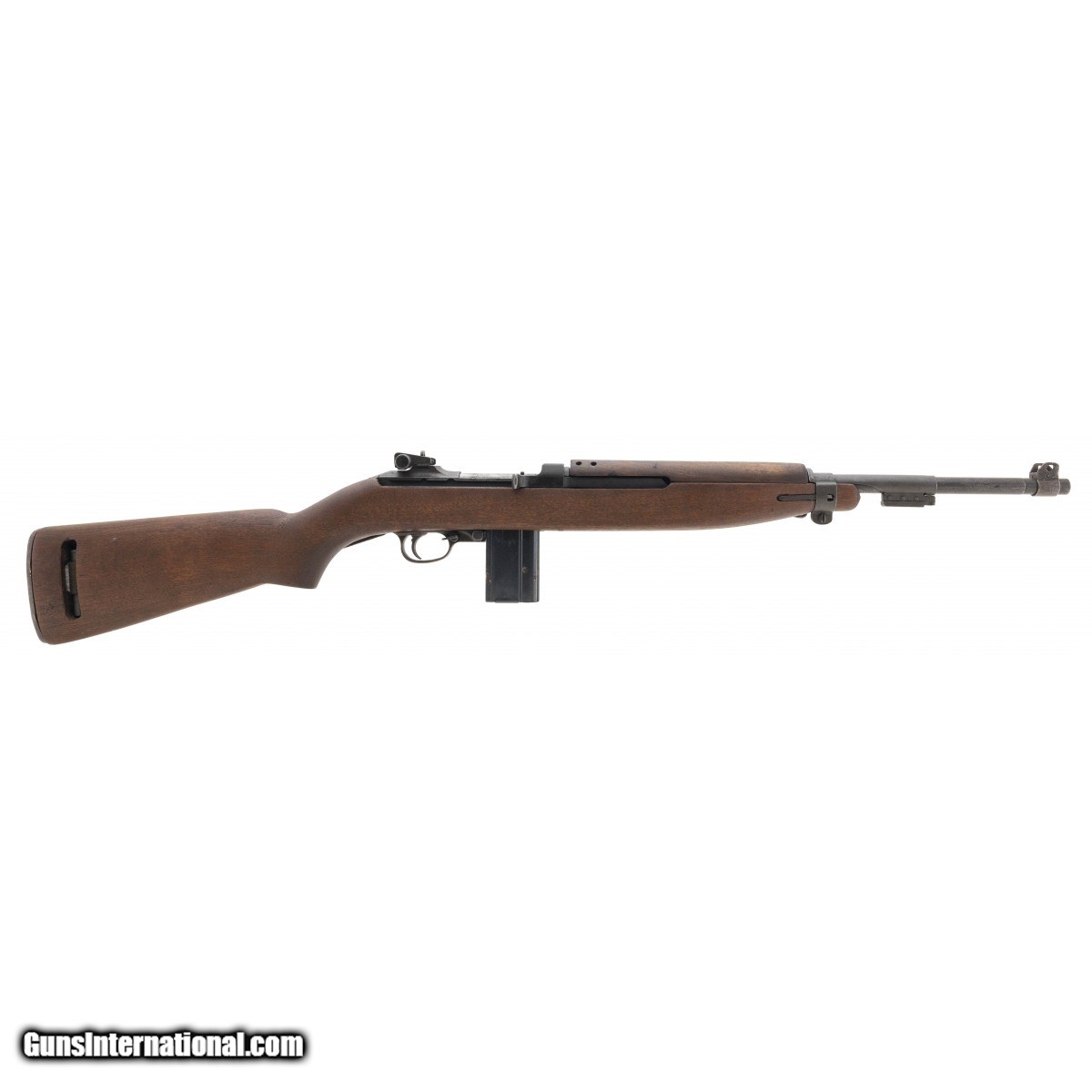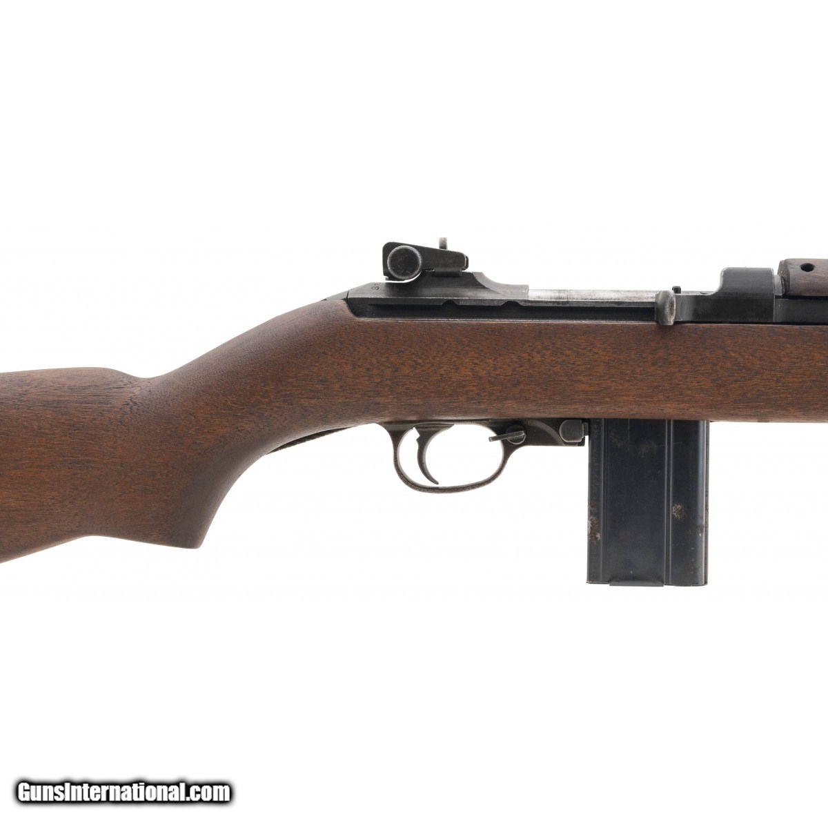 SN: 5750548. WWII U.S. military carbine made by Winchester in 1944 and later arsenal refurbished for Korea. Low wall, oval cut stock is in excellent condition. Has been re-barreled. The barrel is marked with a Winchester proof mark. There is an import mark on the left of the barrel. Stamped rear sights. Overall excellent condition.