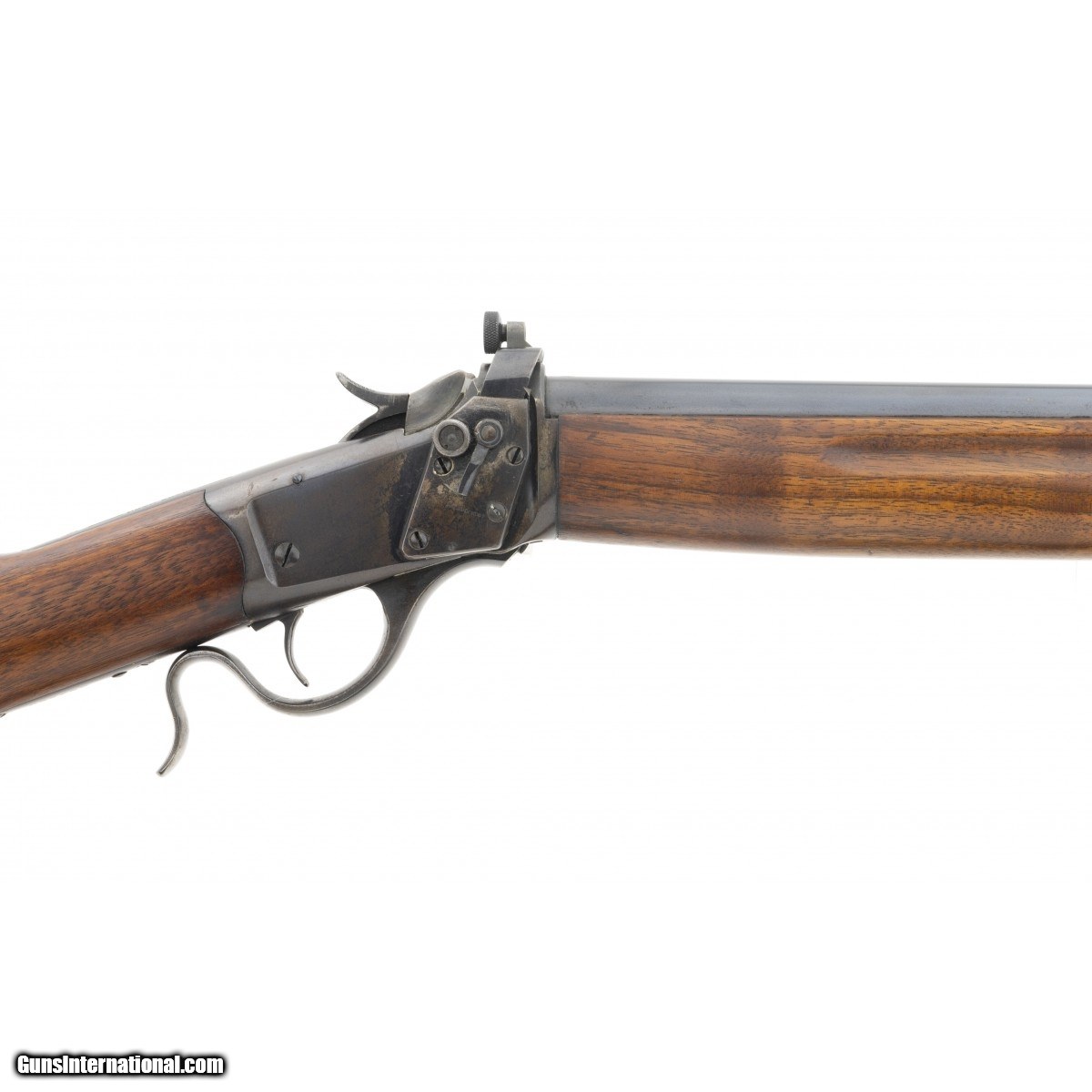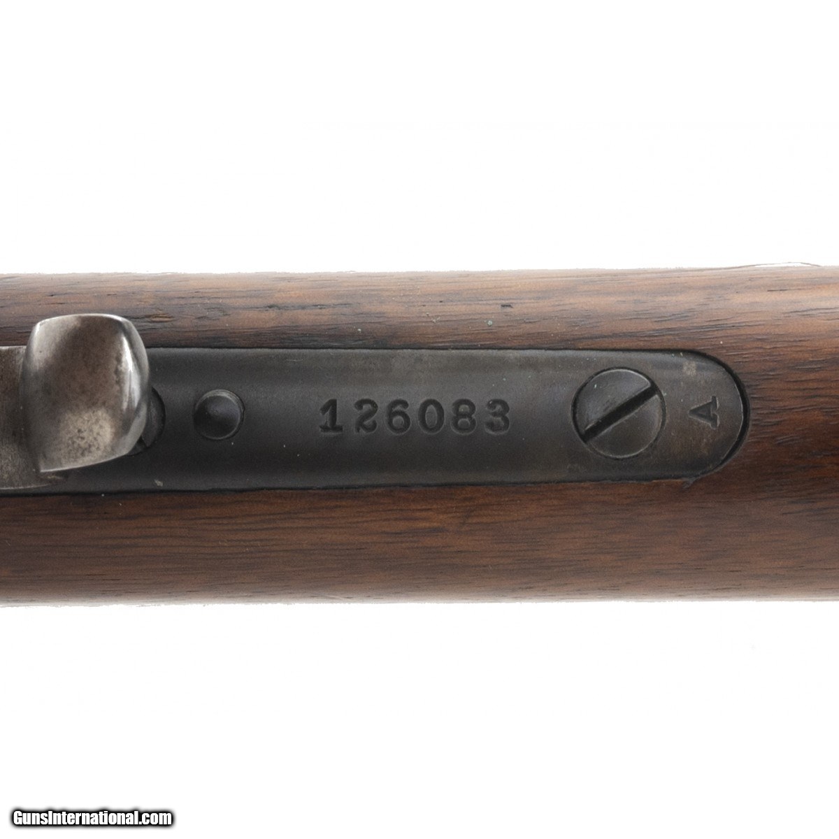 Description: " Winchester Winder Musket U.S. and ordnance bomb marked behind the hammer. Rifle is in 22 short caliber. The bore is mirror bright with perfect rifling. The barrel has 98% factory blue. The action works perfectly. The buttstock has some light surface scuffs. Forend is perfect . No scuffs. Rifle comes with a vintage U.S. military sling, probably for a 1903 Springfield. The frame has original blue that is flaking. No rust No pits no abuse, except for the light scuffs previously mentioned. In our experience this rates as very good plus! SOLD Curio/Relic: Yes |