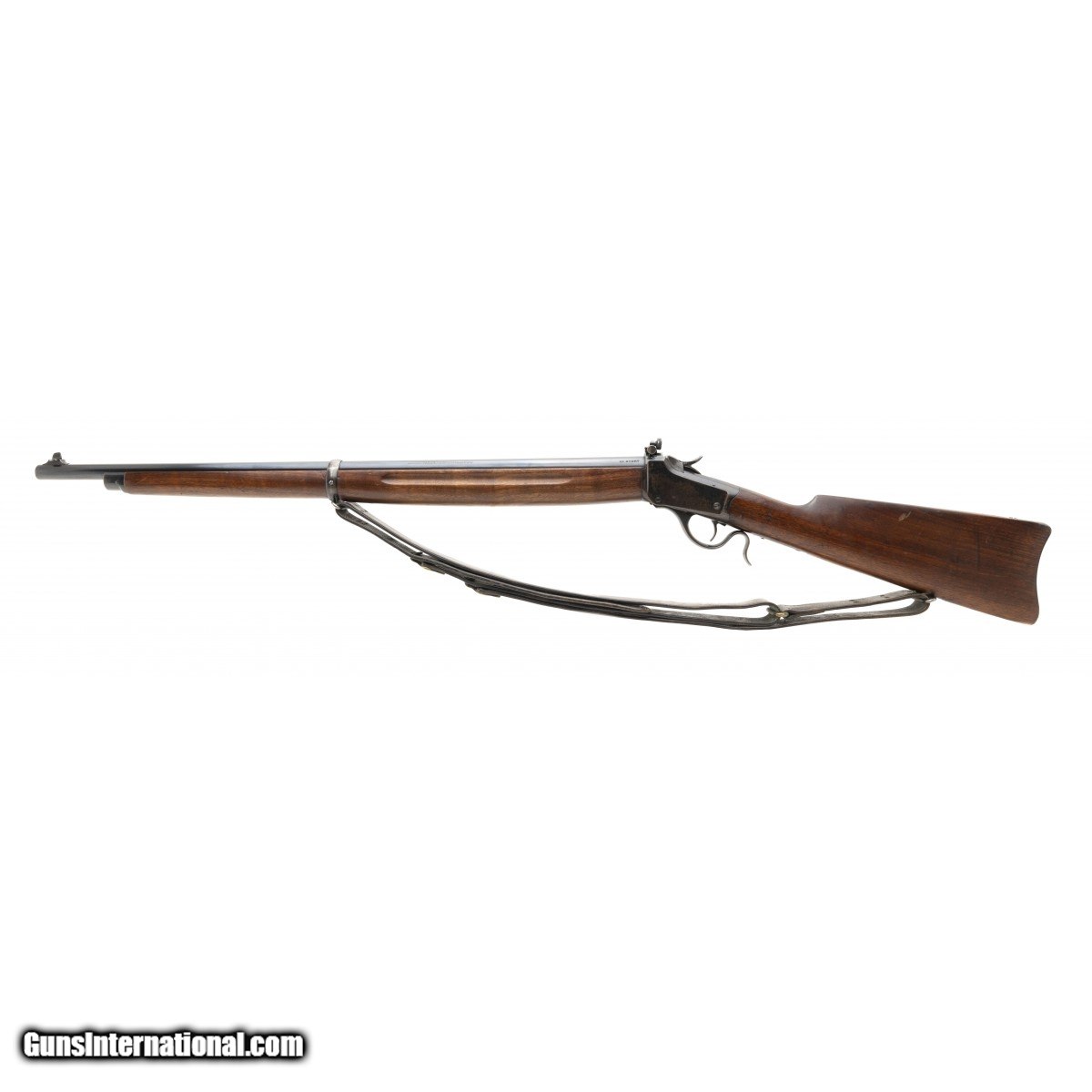 Description: " Winchester Winder Musket U.S. and ordnance bomb marked behind the hammer. The U.S. bought these for troop training during WWI. Rifle is in 22 short caliber. The bore is mirror bright with perfect rifling. The barrel has 98% factory blue. The action works perfectly. The buttstock has some light surface scuffs. Forend is perfect . No scuffs. Rifle comes with a vintage U.S. Model 1907 military sling. The frame has original blue that is flaking. No rust No pits no abuse, except for the light scuffs previously mentioned. In our experience this rates as very good plus! SOLD Curio/Relic: Yes |