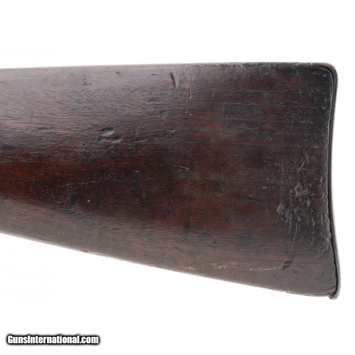 US Navy contract. Metal has been refinished and looks good. Bore has strong rifling with pitting. Action works properly. Stock has some cracks at wrist. Good overall condition. Barrel and bolt have correct markings. A scarce Navy model.