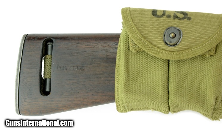 Description: Winchester M1 .30 Carbine caliber carbine. Popular Winchester marked M1 Carbine made for WWII arsenal refurbished for Korea. Stock is marked PGH Police. Most likely Pittsburgh Police. Stock also has nice sharp cartouches. Comes with oiler, sling and ammunition pouch. Near excellent overall condition.