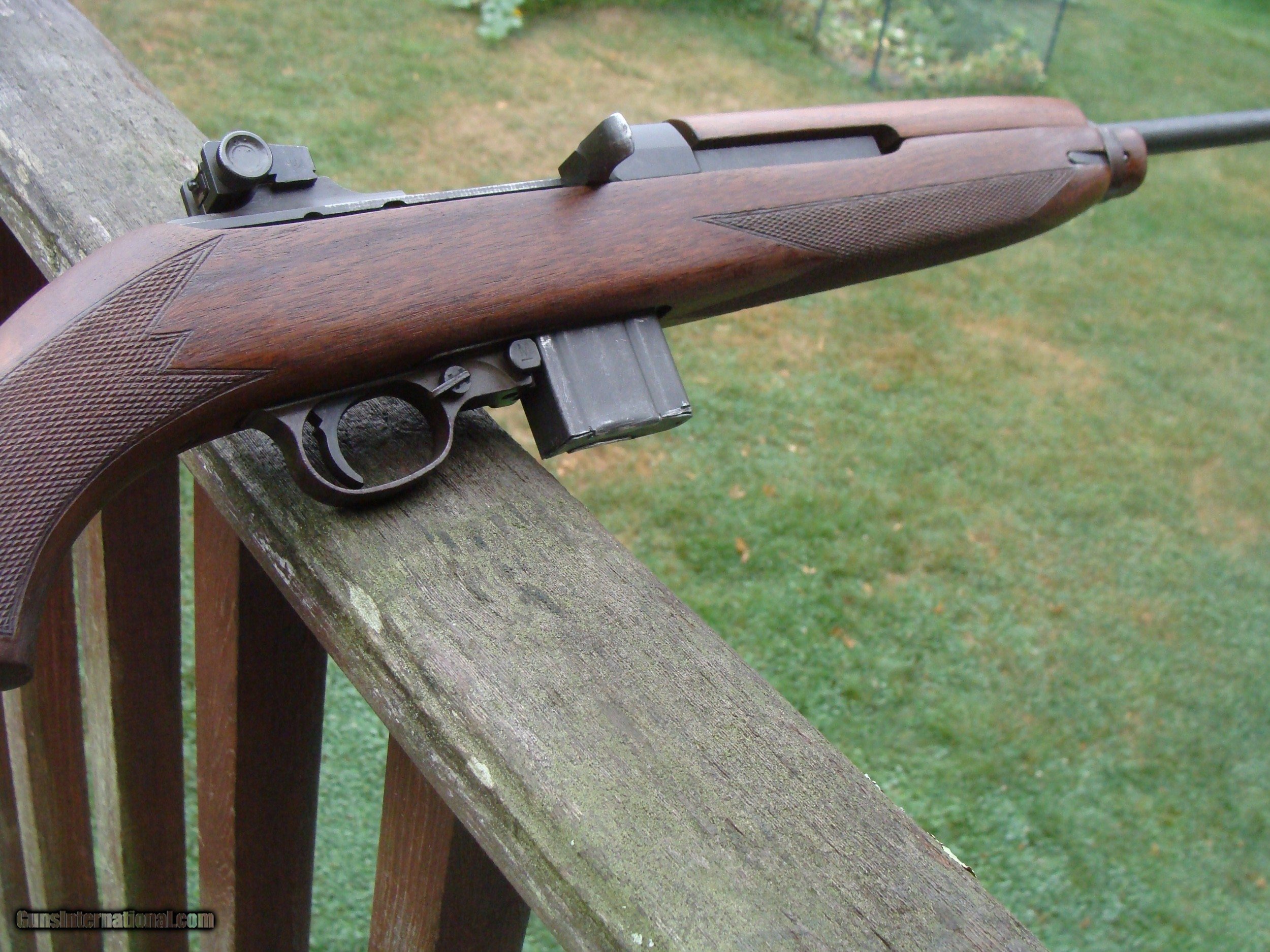 Description: This gun has been re stocked with a nicely checkered sporter stock and is being offereed for a little more than half of what a good New Haven Winchester M1 Carbine might otherwise sell for. For any who are interssted it should be pretty easy to find a good correct orig. stock and it should be possible to sell this nicely done monte carlo stock with well executed checkering on pg, forearm and underside of forearm. With extend higer cap mags (where legal) this handy , short. lightweight carbine (only 36" and a little over 5 1/2lbs would make a handy bedroom, truck or home defense gun. Shipping is $ 45.00 WE HAVE WELL OVER 1500 SALES ON ALL SITES WITH AN A+ RATING ON ALL (WE ALSO KEEP AN INVENTORY OF OLDER PERIOD CORRECT SCOPES; CALL WITH NEEDS) WE ARE HAPPY TO TAKE CONSIGNMENT GUNS AND COLLECTIONS OR WILL BUY YOURS OUTRIGHT. WE SOMETIMES ARE EMPLOYED FOR ESTATE PURPOSES AND VALUATIONS. CT RESIDENTS MUST CONTACT US TO UNDERSTAND OUR IN STATE TRANSFER POLICIES. WE CAN TAKE A CREDIT CARD HOWEVER THERE IS A 3% ADD ON BASED ON THE TOTAL FOR USE OF A CARD. IT IS ALWAYS THE BUYERS RESPONSIBILITY TO GET US A COPY OF YOUR RECEIVING FFL'S LIC AND WE REQUIRE A COPY OF YOUR PHOTO ID BEFORE THE GUN SHIPS YOU MUST CALL YOUR FFL.WE DO NOT CALL FOR YOU. LAYAWAY PURCHASES NOT COMPLETED OR ANY RETURNED ITEM UNLESS NOT AS DESCRIBED ARE SUBJECT TO A 10% RELISTING/RESTOCKING FEE AND MUST BE RETURNED WITH NO MARKS OR SCRATCHES, SENT BACK INSURED, PRIORITY SIGNATURE REQUIRED WE DO NOT OFFER AN INSPECTION PERIOD PER SE HOWEVER GUNS MAY BE RETURNED IF NOT EXACTLY AS DESCRIBED UNDER NO CIRCUMSTANCE MAY ANY GUN TO BE RETURNED HAVE BEEN REMOVED AT ANY TIME FROM RECEIVING FFL DEALERS PREMISIS AND RETURNS MUST 1ST BE APPROVED BY US IN ADVANCE, IN WRITING SOLD |