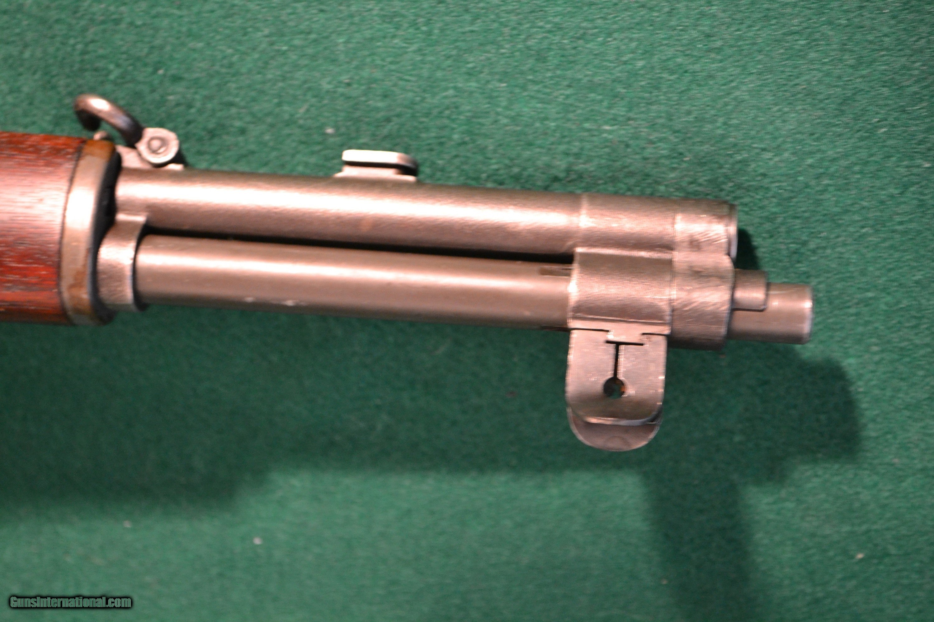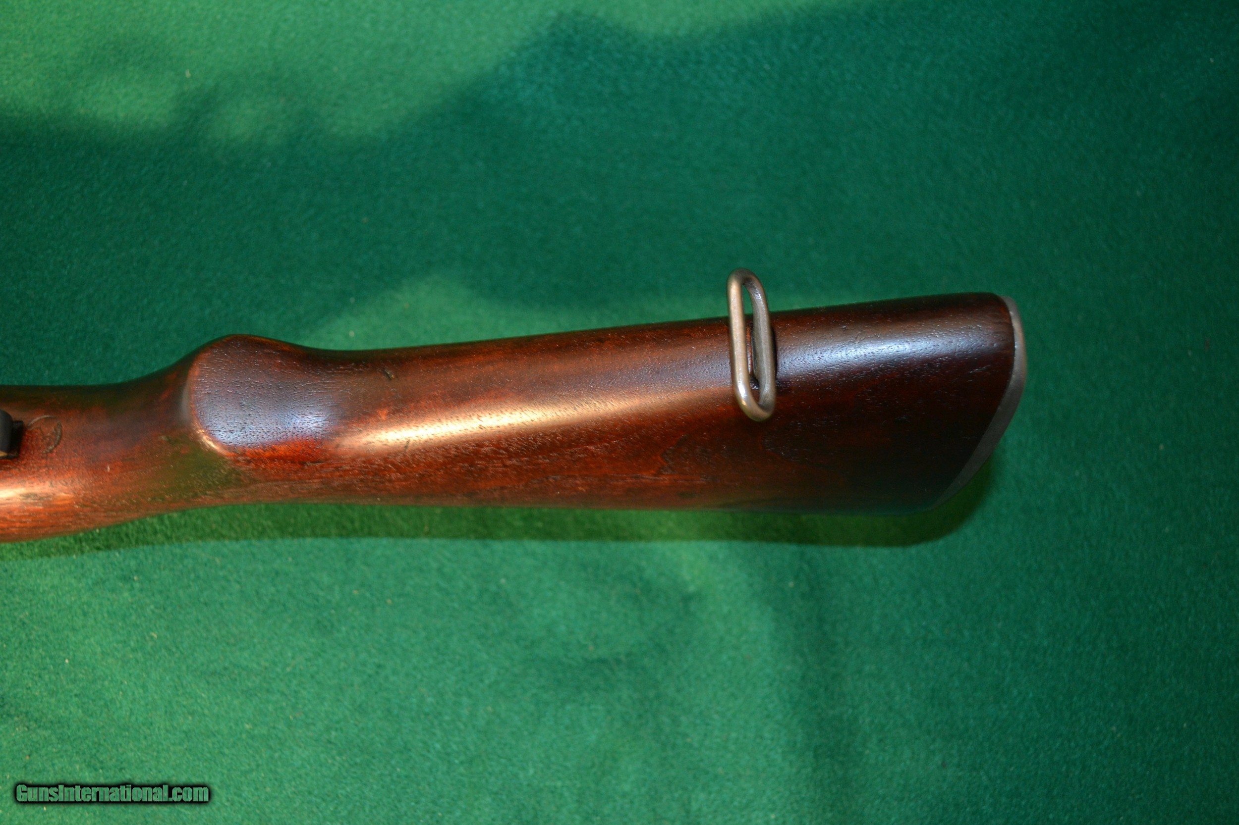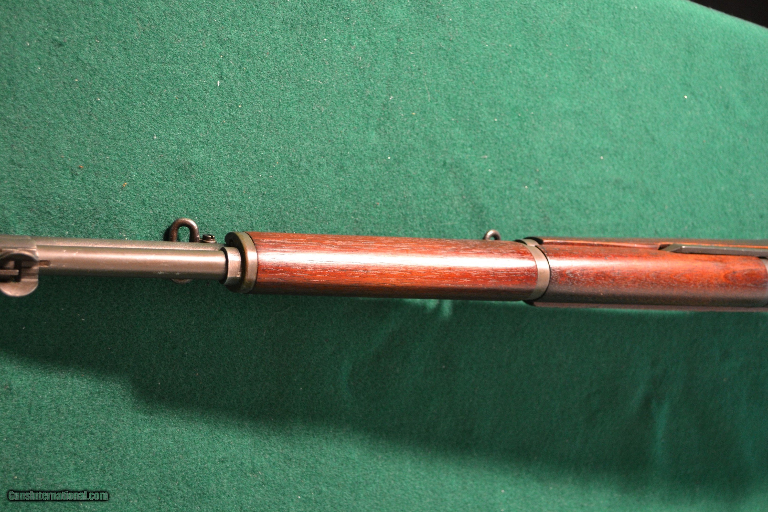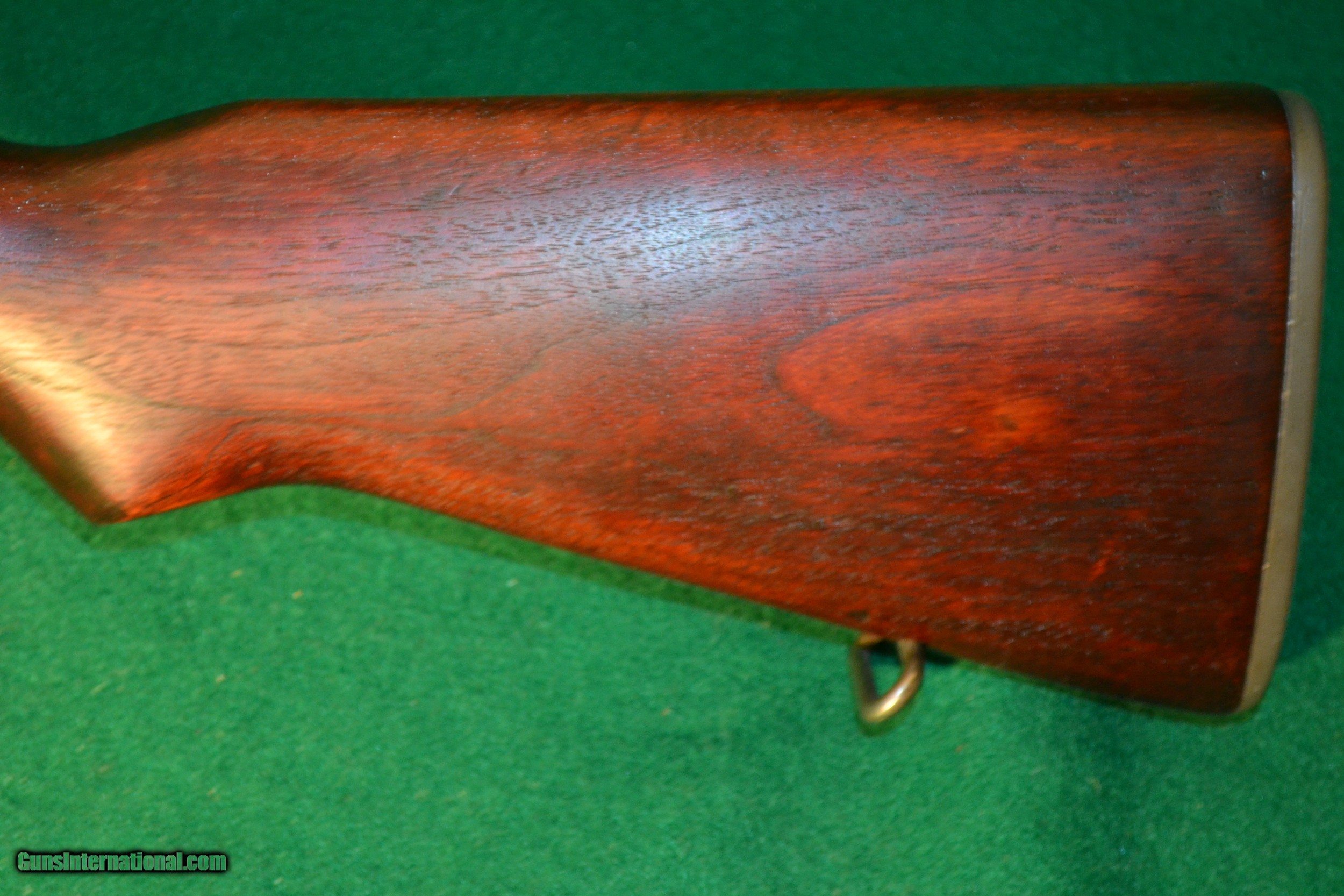 Description: Sale ending !! This Winchester M-1 Garand Cal 30-06 was mfg abt 4/43., Serial No. 1331XXX. It has all authenic WW II parts and is both an excellent choice for both the discerning collector and gun range individual. The gun metal is a matching gray parkerizing w/a an olive tone. all parts are WW II correct. The gunstock is a clean & smooth walnut w/matching upper and lower handguards .The stock has the correct "WRA/GHD" and Winchester "Cross Cannon" cartouches & w/the w/the circled proof-firing serif "P" just behind the trigger guard. The stock and handguards are w/o any cracks or major handling marks. This Winchester Garand to me would rate an "NRA Very Good to Excellent - overal. The following parts are inventoried to this Garand: Receiver - D28291-2, HT - N/A, Barrel Markings (Top - D35448WRA w/ > (As a proofmark), Bolt Dwg No - D28287-1WRA (No Heat Treat No., Operating Rod - D35382-WRA (W 5/16cut), Trigger Hsg - D28290-WRA, Trig Guard - Miller w/C46025-WRA, Hammer - C46008-1WRA, Hammer Spg Guide - Cut Away, Safety - WRA-1, Plunger - Winged, Bullet Guide - T2D Forged, Wide "UM", Clip Latch - Rounded, Follower Arm - T2 UM, Follower Rod - T5 (Late War), Oper Rod Catch - T2 (Late '43), Lower Band - T2 (Flat), , Butt Plate - T2 (W/o 2s) or UM, Stock - Winchester w/"W.R.A./G.H.D. w/Cross Cannons cartouches and Circled serif "P" , Gas Cylind - T2A-2 Win w/narrow flat, Gas Cyl Lock - T2 w/champfer, Gas Cyl Screw - Single Slot., Rear Sight - T1C (Oper Arrows) Left Eelevation w/recessed flat screw and knurled, Right Windage -R -T2B (Open Arrows)Lockbar. Windage & Knurled. Aperature - Wide Sq. Shoulders. UM = Unmarked SOLD Rifle Caliber: .30-06 Springfield Manufacturer: Winchester Model: M-1 Garand Serial Number: 1331XXX Barrel Length: 24 Bore: Measures "1/2 Condition: Excelleent Metal Condition: Excellent Wood Condition: Very Good to Excellent Bore Condition: Mirror Action: Semi Auto Stock: Walnut LOP: 13 1/4 Sights: Knurled R & L w/Lockbar Manufacture Date: 4/43 |
