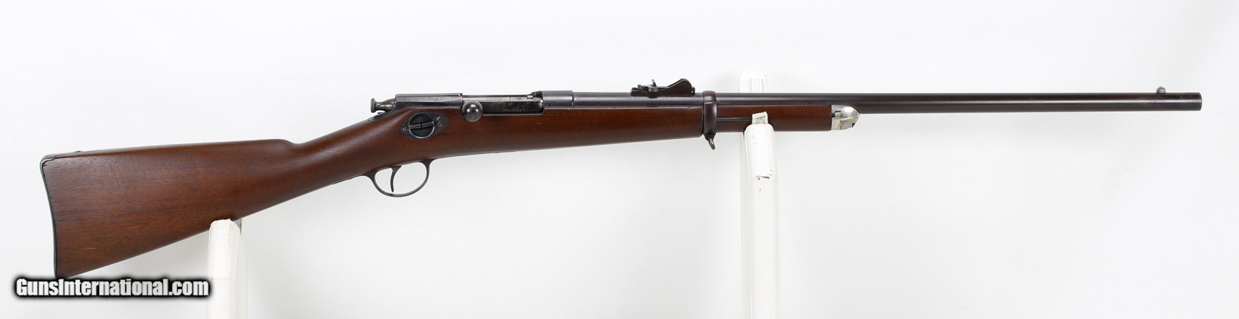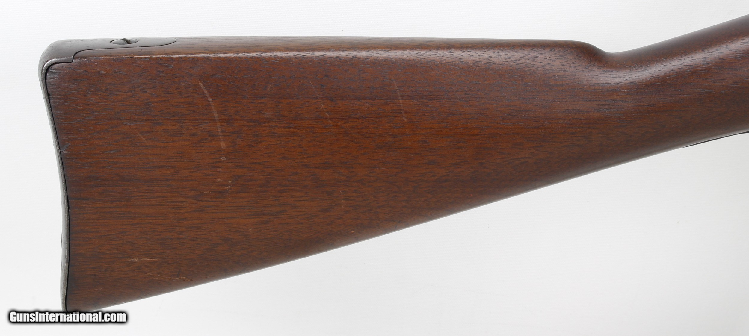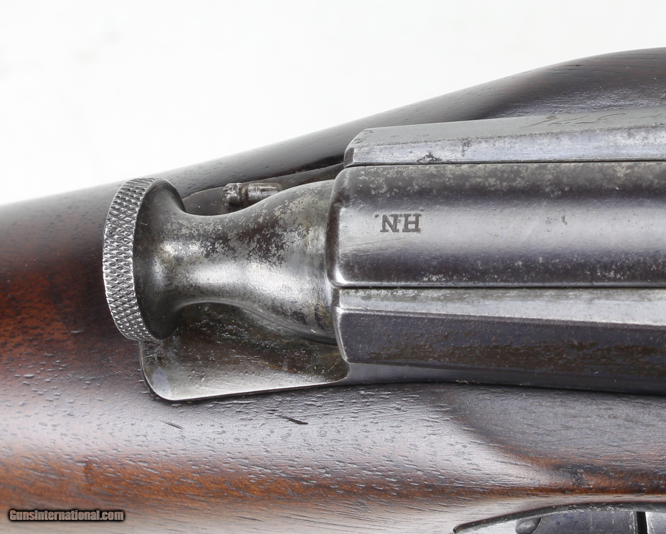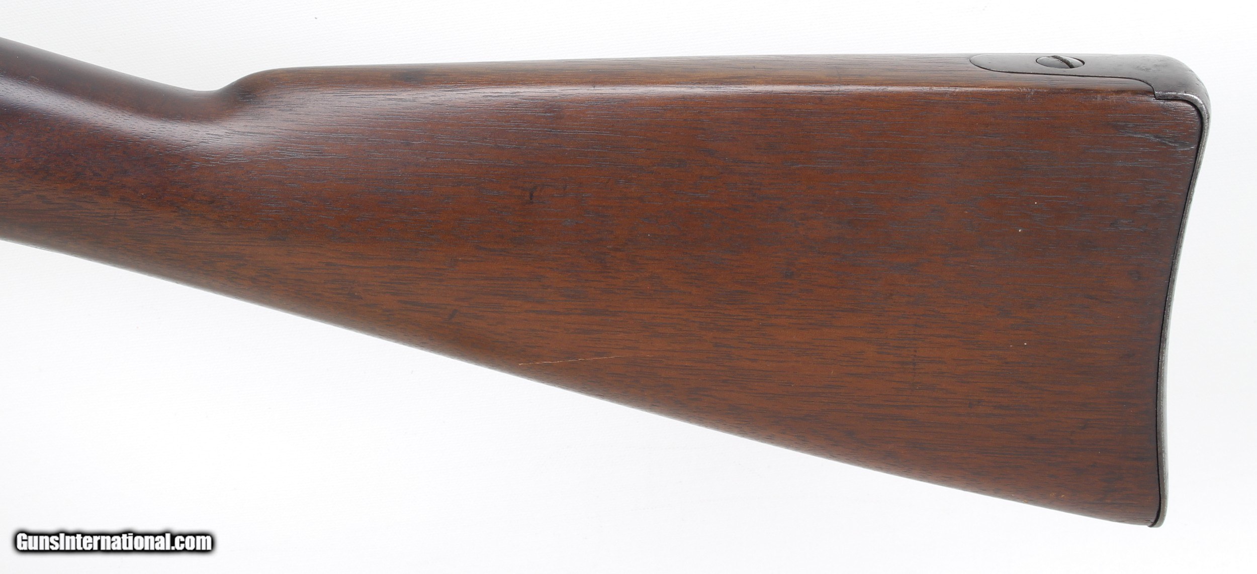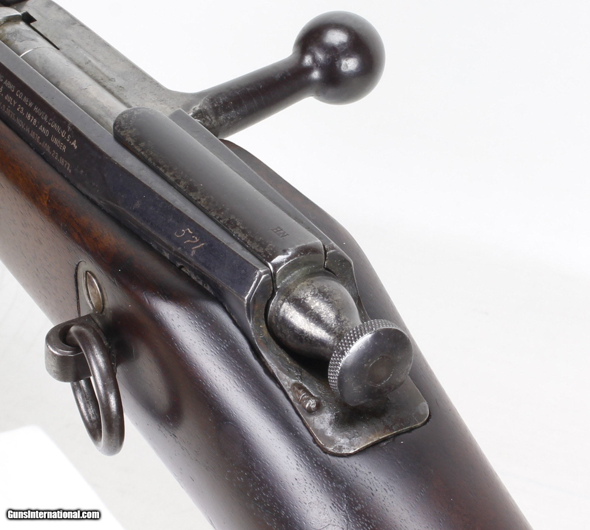 Description: WINCHESTER HOTCHKISS, SPORTING, 45-70, 24 1/4" Barrel, "Often Referred to as the: HOTCHKISS BOLT ACTION REPEATER". SN#1334, MFG: 1880/81, Wincester Letter, States gun was made as Musket, Converted to Sporter at Later Date. Located on Receiver Under the Wood on Left Side. This Gun Appears to have Military Marking on Barrel. The gun has a Nickel Plated Fore-End Cap W/Lever, to allow for storage of Cleaning Rod. The Stock has been Professionally Repaired, 2 1/2" Crack Left Side of Pistol Grip at Tang. Fine Mechanically, Fine Bore, Bright with Strong Rifling. Ships to Lower 48, w/Insurance: $60.00 More Pictures Available for Download. SOLD Antique: Yes Rifle Caliber: .45-70 Government |