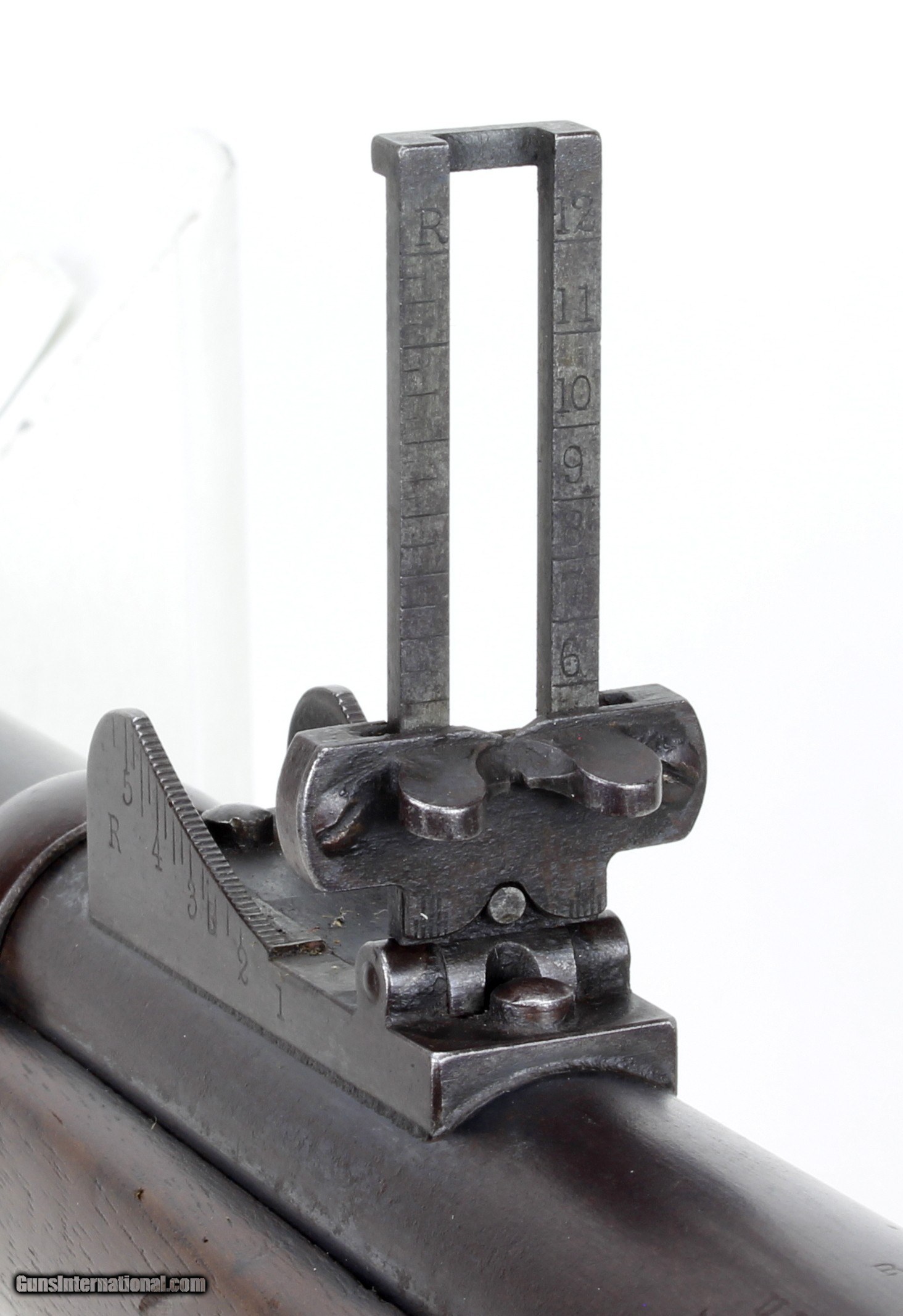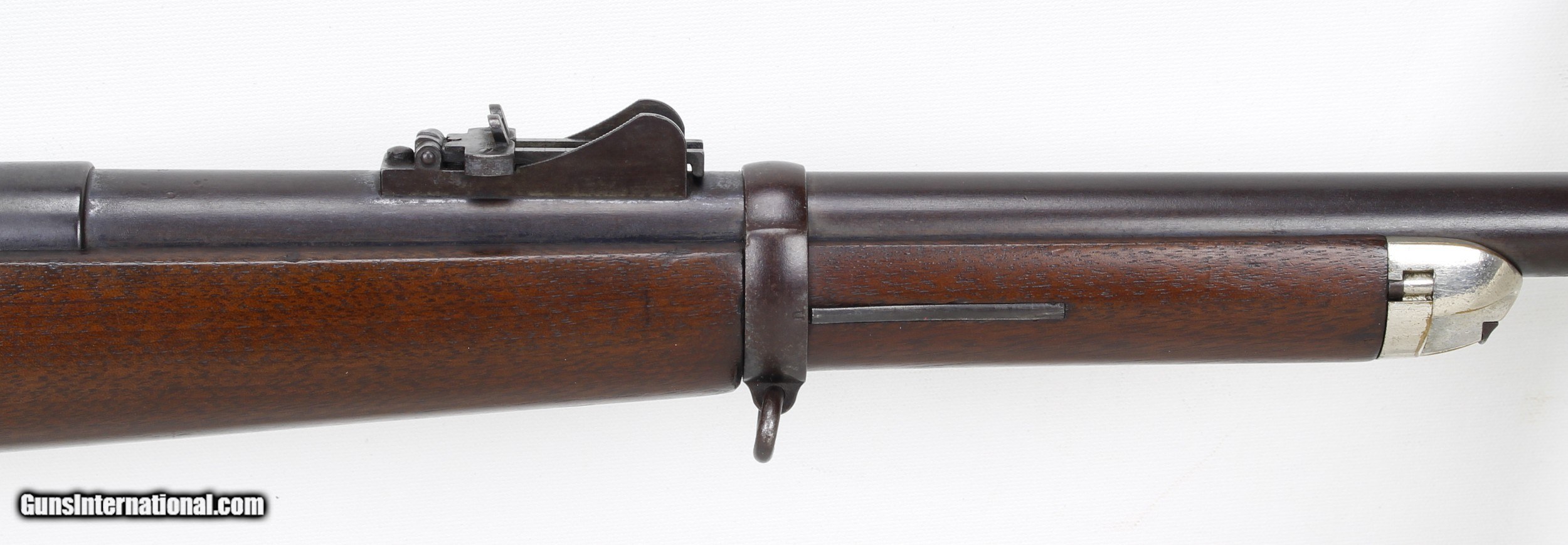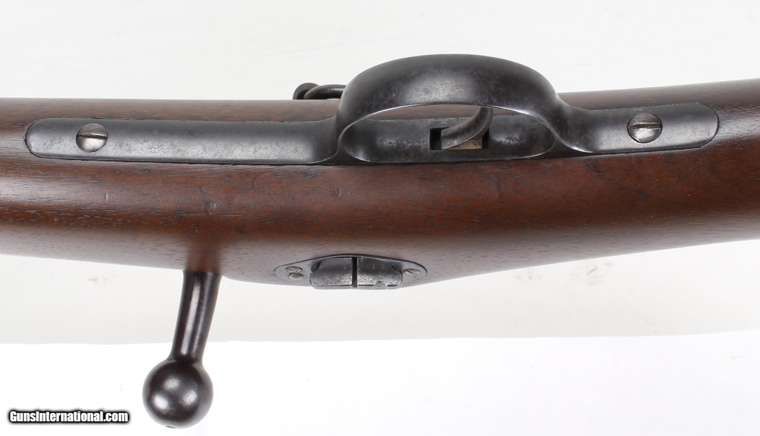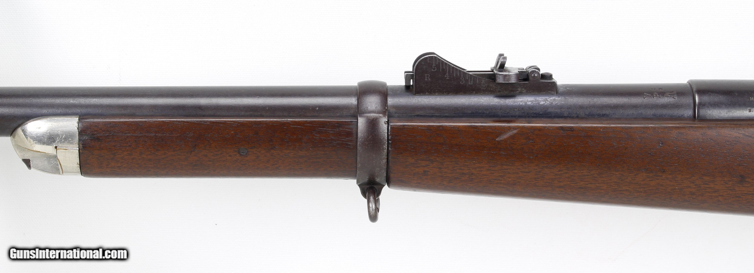 Description: WINCHESTER HOTCHKISS, SPORTING, 45-70, 24 1/4" Barrel, "Often Referred to as the: HOTCHKISS BOLT ACTION REPEATER". SN#1334, MFG: 1880/81, Wincester Letter, States gun was made as Musket, Converted to Sporter at Later Date. Located on Receiver Under the Wood on Left Side. This Gun Appears to have Military Marking on Barrel. The gun has a Nickel Plated Fore-End Cap W/Lever, to allow for storage of Cleaning Rod. The Stock has been Professionally Repaired, 2 1/2" Crack Left Side of Pistol Grip at Tang. Fine Mechanically, Fine Bore, Bright with Strong Rifling. Ships to Lower 48, w/Insurance: $60.00 More Pictures Available for Download. SOLD Antique: Yes Rifle Caliber: .45-70 Government |