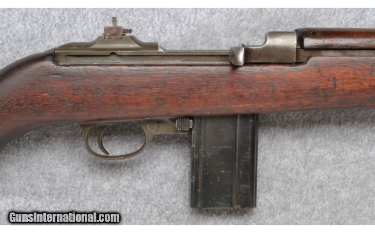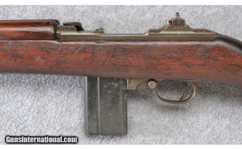 Description: Wood has darkened with age and shows normal use marks throughout. Still has cartouches visible. Upper handguard is loose. Metal is free of pitting and bore is excellent! SOLD Curio/Relic: Yes Manufacturer: S/N 105XXXX Caliber Info: .30 Carbine Metal Condition: Very Good Wood Condition: Good Bore Condition: Excellent Barrels: 18 Triggers: Original Stock: Uncheckered Walnut Stock Dimensions: 13 1/8" LOP Fore End: Uncheckered Walnut Butt Pad: Checkered Steel Weight: 5 1/4 LB Sights: Military Post Front-Two Position Aperture Rear Item Location: Wheeling, WV |