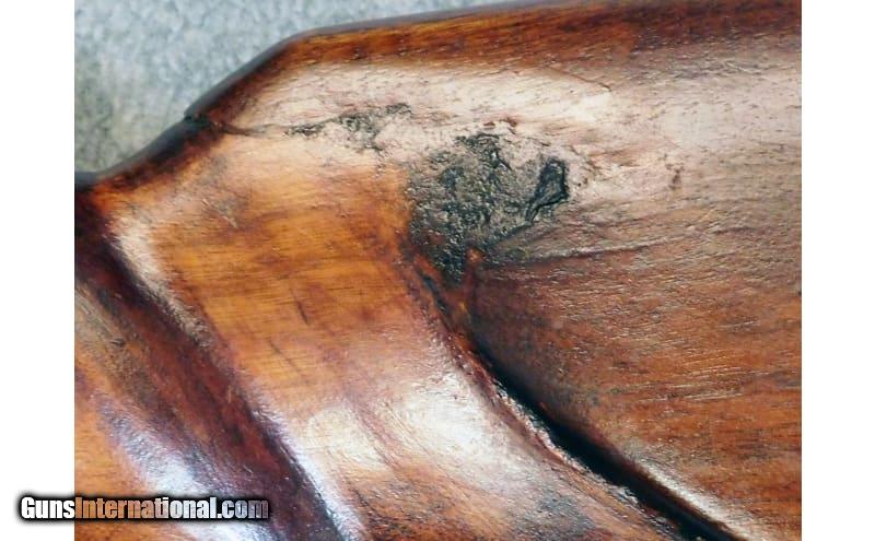 Description: Winchester ~ M1 Garand ~ Chambered in .30-06 Springfield. Note, it is strongly advised to only use "Garand Optimized" ammunition. This 1944 example has been subject to an interesting sporterization. Featuring a 24" barrel, paired with a Midwest Optical Precision 4x32 scope...mounted offset to the left as to not interfere with function. Iron sights are present in factory locations. Parkerized receiver and barrel both show signs of use and wear and are seated in an unusual custom walnut stock which features a prominent gnarled knot on the left side of the buttstock. .30-06 Springfield SOLD Curio/Relic: Yes Chambers: .30-06 Springfield. Metal Condition: Good condition. Wood Condition: Good condition. Bore Condition: Good condition. Barrels: 24" inches. Triggers: 7.5 pounds. Stock Dimensions: 14" LOP. Fore End: Walnut. Butt Pad: Vented rubber. Weight: 11.25 pounds Sights: "Midwest Optical Precision 4x32mm scope, iron sights. Item Location: Acworth, GA |