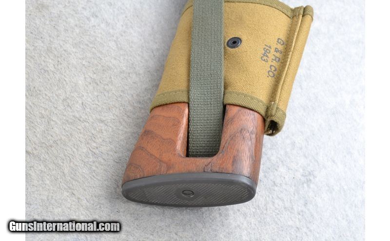 Description: This Winchester Model M1 US Carbine is a right hand semi-auto US Military rifle in .30 Carbine Cal. It has an 18 inch barrel. A protected blade front sight and an adjustable aperture rear sight. The stock is a smooth grip hardwood pistol grip. Serial Number 1056744 with the barrel stamped Underwood 11-43. Comes with a sling, oil tube and magazine sleeve. .30 Carbine SOLD Curio/Relic: Yes Chambers: Semi-Auto 15 round magazine. Metal Condition: Very good. Minor handling marks. Wood Condition: Excellent with minor handling marks. Bore Condition: Excellent. Barrels: 18 inch. Stock Dimensions: LOP 13 1/4 inches. Fore End: Smooth grip two piece hardwood. Butt Pad: Checkered steel plate. Weight: 5 Lb. 8 Oz. Sights: Blade front with protective sides. Adjustable aperture rear. Item Location: Richfield, WI |
