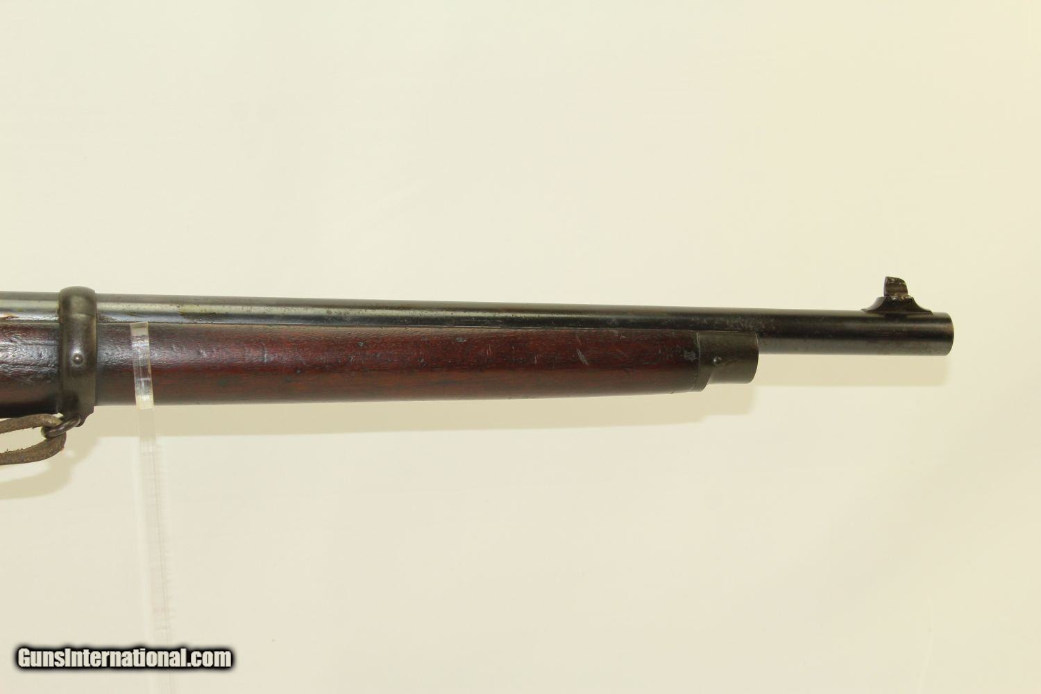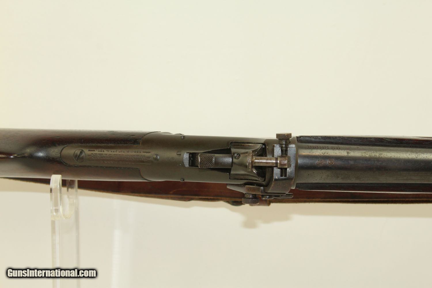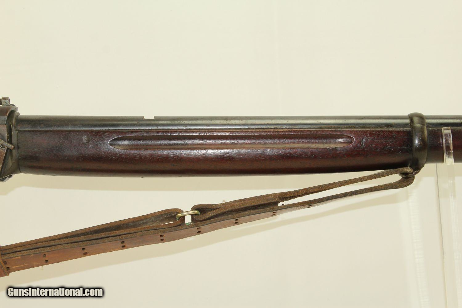 Description: WINCHESTER Model 1885 Low Wall WINDER Musket-Rifle Scarce w/ US Ordnance Flaming Bomb & Leather Sling Here we present a Winchester 1885 Low Wall “Winder” Musket, chambered in .22 Rimfire Short, made circa 1918 in New Haven, Connecticut. Ironically, this was Winchester’s first single shot rifle, the company having been founded on its winning lever action repeater design. John Moses Browning, the famed gun designer who forever changed the firearms landscape, began his career with this rifle in the 19th Century before dominating the world scene in the 20th Century. This example is one variant known as the “Winder Musket”, which was heavily influenced by Colonel C. B. Winder for use as a training rifle for troops. The idea was that it be a full-sized rifle chambered in .22 Rimfire Short so that the trainee get the weight and feel of a rifle of heavier caliber and the recoil and thrift of .22 Rimfire. This rifle was one of only about 11,000 to be purchased by the U.S. Ordnance Department from 1918-1919. It was replaced shortly by bolt action .22s, as the bolt action was the action of the day. The rear sight is the original Lyman. The overall condition is near fine. 90% of the blue finish remains. The markings are clear. The walnut stock is in great shape. The bore is in very good condition with nice rifling. The action is excellent. This firearm is classified as a Curio & Relic. Barrel is 28 inches. Caliber: .22 Short Overall condition as seen in photos. Very Fast. Very Safe. FREE SHIPPING. Will need to be sent to your local FFL or C&R licensee. This firearm is classified as a Curio & Relic. Guaranteed AUTHENTIC & Includes CERTIFICATE OF AUTHENTICITY. ancestryguns $1550 #190321 SOLD Curio/Relic: Yes |