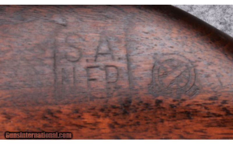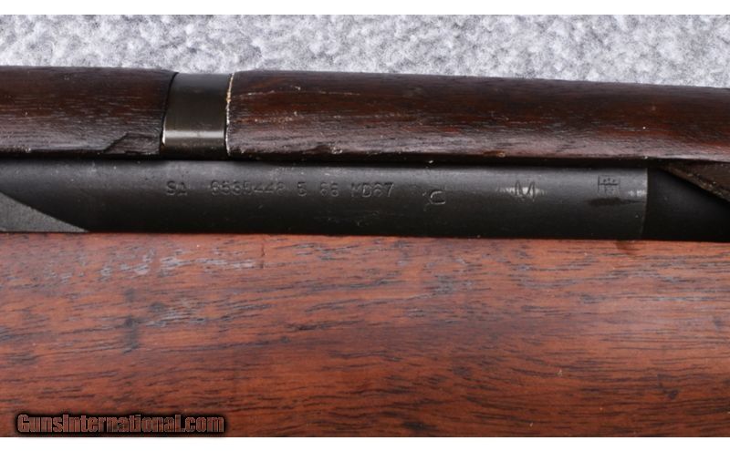 Description: This Winchester remains in overall very good condition. Wood is solid with no cracks or splits only a few light use marks. Metal is good also showing light wear with much wear to receiver stamp. Bore is excellent! Gun is complete with a green canvas sling with"51" painted in bright yellow with cleaning kit inside trap door compartment. Springfield Armory barrel is dated "5-66". Circle "P" cartouche and small crossed cannons on pistol grip. "S.A." over "N.F.R." (Springfield Armory / Norman F. Ramsey) with large "Crossed Canons". Neat old military gun! .30-06 Springfield SOLD Curio/Relic: Yes Metal Condition: Very Good Wood Condition: Very Good Bore Condition: Excellent Barrels: 24 Triggers: Factory Stock Dimensions: 13 1/4" LOP Fore End: Uncheckered Walnut Pistol Grip - Uncheckered Walnut Forend Butt Pad: Checkered Metal Butt Plate with Trap Door Weight: 10.5 LB Sights: Military Post Front - Military Adjustable Rear Item Location: Wheeling |