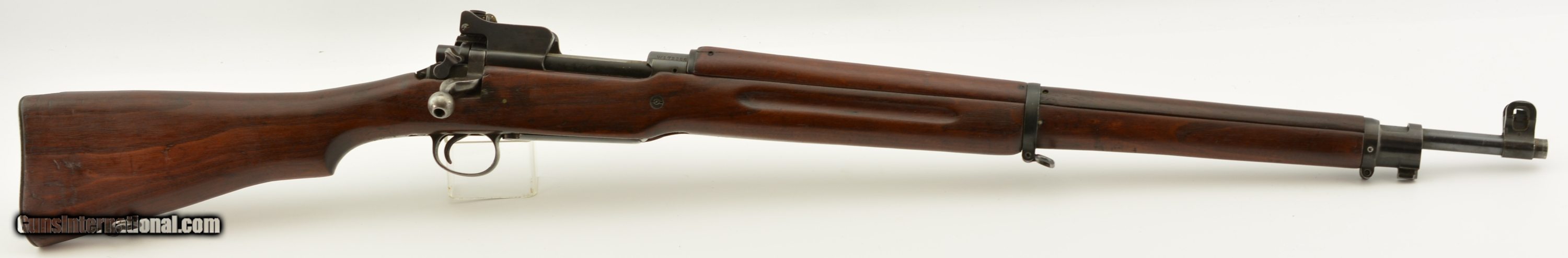Description: Serial #W172386, .303 British, 26" barrel with an excellent, bright bore. This Winchester-made rifle was arsenal overhauled prior to WW2, and has the Weedon repair star marking on both the receiver and the "W" marked, non-matching bolt. The metal retains about 85-90% of the original blue finish with silvering at the muzzle, as well as along the high edges and projections, particularly on the bearing surfaces of the bolt. The rifle is fitted with an Eddystone-made, Model 1917 stock (it is believed that some 1917 stocks were fitted by the Weedon Depot if the originals were deemed "beyond repair") that has minor handling marks and blemishes in the reapplied military oil finish. Additionally, there is a rectangular arsenal repair to the forend, just ahead of the swivel band. The rifle is further equipped with a Remington-designed, experimental rear sight, added to the original matching-numbered Winchester sight ladder. This sight was designed to address the lack of windage adjustment in the stock M1917 rear sight, and a handful were assembled in 1918 by Remington. It is unknown how the sight came to be installed on a British P-14 made by Winchester, but the stamped part number (2283692) is identical to one installed on a Remington Model 1917 rifle that was once part of both the Remington Museum and William Brophy collections. This is a very good-fine example of an armory refurbished Pattern 14, with an extremely rare experimental rear sight. FFL or C&R SOLD Curio/Relic: Yes Manufacturer: Winchester Model: P14 Serial Number: W172386 Caliber Info: .303 Gauge Info: .303 |