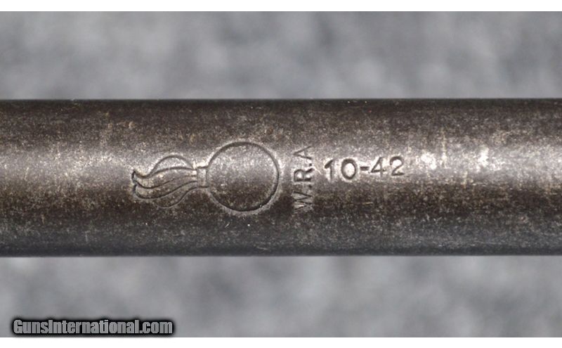 Description: For your consideration, an M1 Carbine by Winchester chambered in .30 Carbine. Notable components are as follows: Winchester receiver and W.R.A barrel with integral gas cylinder, flat bolt, I.R. Co. (Inland) type 3 rear sight, rotary safety, underlined "M" marked magazine release, AMCO bayonet lug/barrel band assembly, and "SIB" marked front sight. The furniture consists of an M2 stock paired with an early 2 rivet handguard. The stock features several hand carved letters, but no formal stampings or markings. .30 Carbine SOLD Curio/Relic: Yes Wood Condition: Good Bore Condition: Very Good+ Barrels: 18 Triggers: Smooth Face Stock Dimensions: 13.25" LOP Butt Pad: Checkered Steel Weight: 5.5 lbs Sights: Iron Sights Item Location: Hamburg, PA |