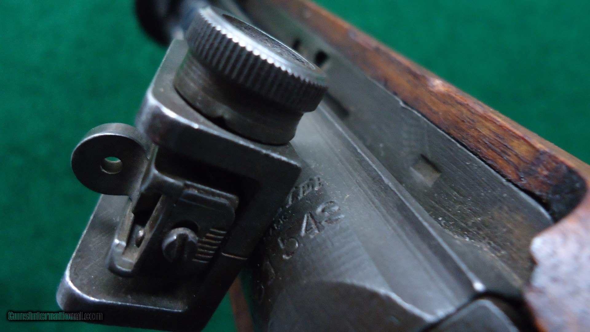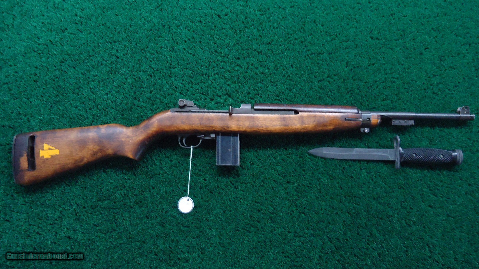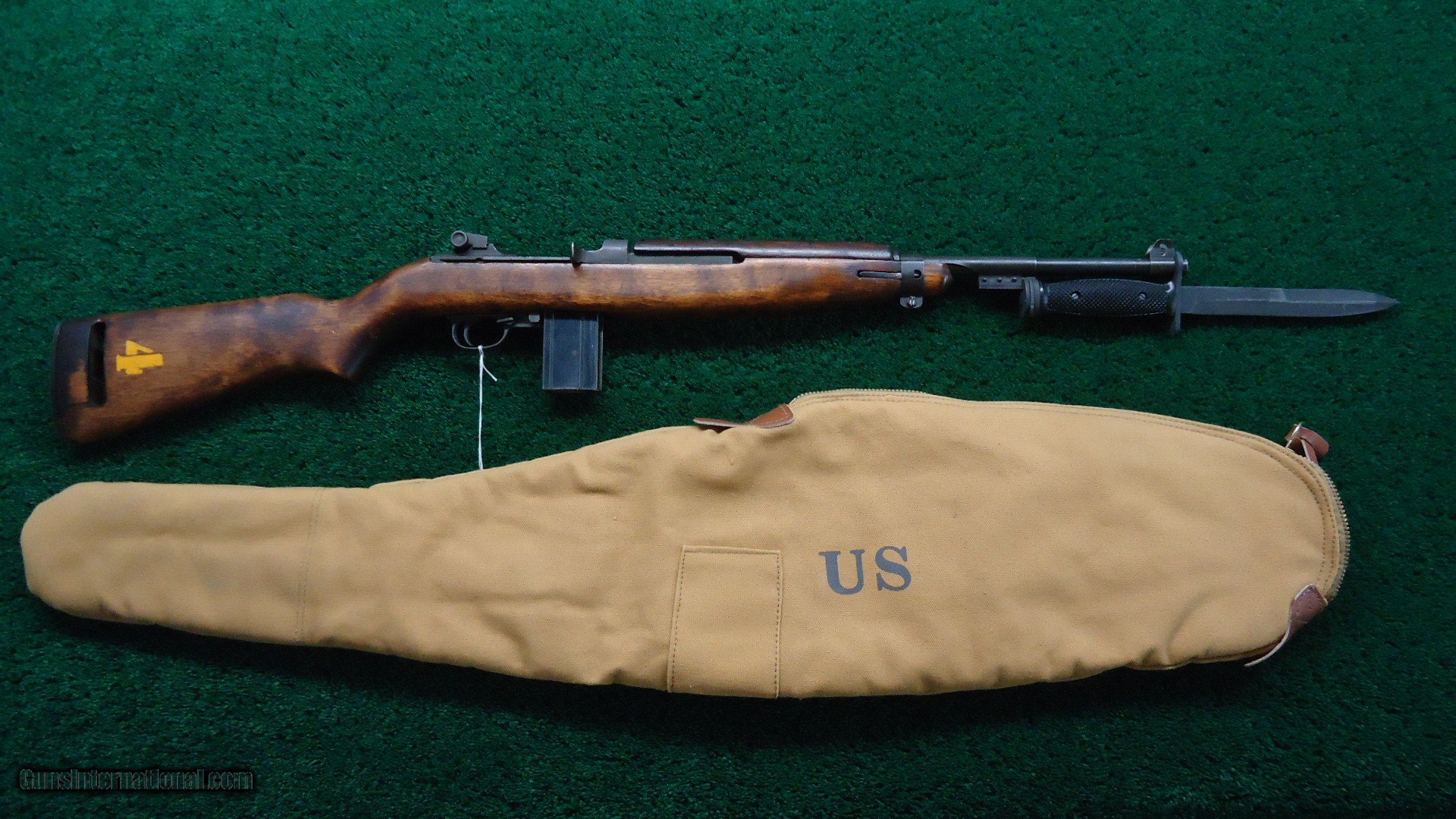 Description: M1 Semi-Automatic Winchester Carbine with 18 inch round barrel chambered in 30 Carbine caliber with a very bright shiny bore. Winchester "W" marked on top of the barrel without a date. Has Type 3 barrel band with bayonet lug. Metal surfaces have a gray parkerized finish. "K.I." Inland Division marked 15 round magazine. Walnut Type 3 Low wood stock. 2 rivet handguard is a darker color. Lever type safety switch. Comes with a reproduction fleece lined M1 Carbine Carrying Case and a USM4 A.K.I. (believed to stand for American Korea Industries) bayonet. No sling or oilier. Made in 1942. Leroy Merz Antique Firearms specializes in antique and vintage Winchesters and other fine American firearms. Since 1965 Mr. Merz has taken part in the world of firearms and has been a contributor to many well known reference books. We have hundreds of additional guns in every price range at our home online. Search for Merz Antiques in google. SOLD Curio/Relic: Yes Rifle Caliber: .30 Carbine |