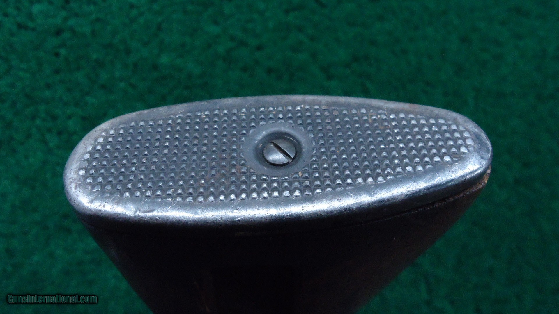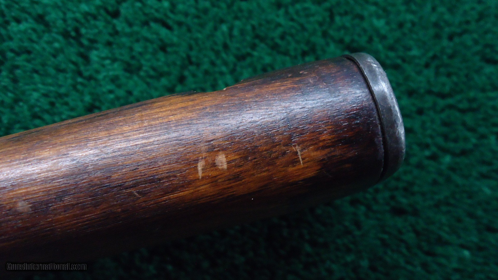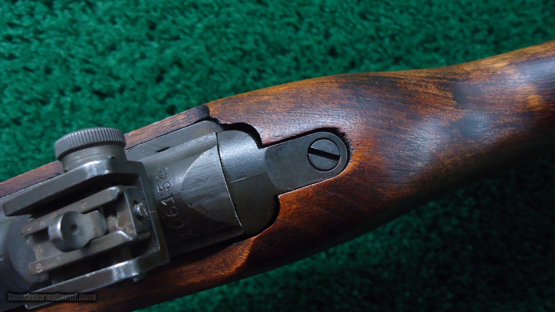 Description: M1 Semi-Automatic Winchester Carbine with 18 inch round barrel chambered in 30 Carbine caliber with a very bright shiny bore. Winchester "W" marked on top of the barrel without a date. Has Type 3 barrel band with bayonet lug. Metal surfaces have a gray parkerized finish. "K.I." Inland Division marked 15 round magazine. Walnut Type 3 Low wood stock. 2 rivet handguard is a darker color. Lever type safety switch. Comes with a reproduction fleece lined M1 Carbine Carrying Case and a USM4 A.K.I. (believed to stand for American Korea Industries) bayonet. No sling or oilier. Made in 1942. Leroy Merz Antique Firearms specializes in antique and vintage Winchesters and other fine American firearms. Since 1965 Mr. Merz has taken part in the world of firearms and has been a contributor to many well known reference books. We have hundreds of additional guns in every price range at our home online. Search for Merz Antiques in google. SOLD Curio/Relic: Yes Rifle Caliber: .30 Carbine |
