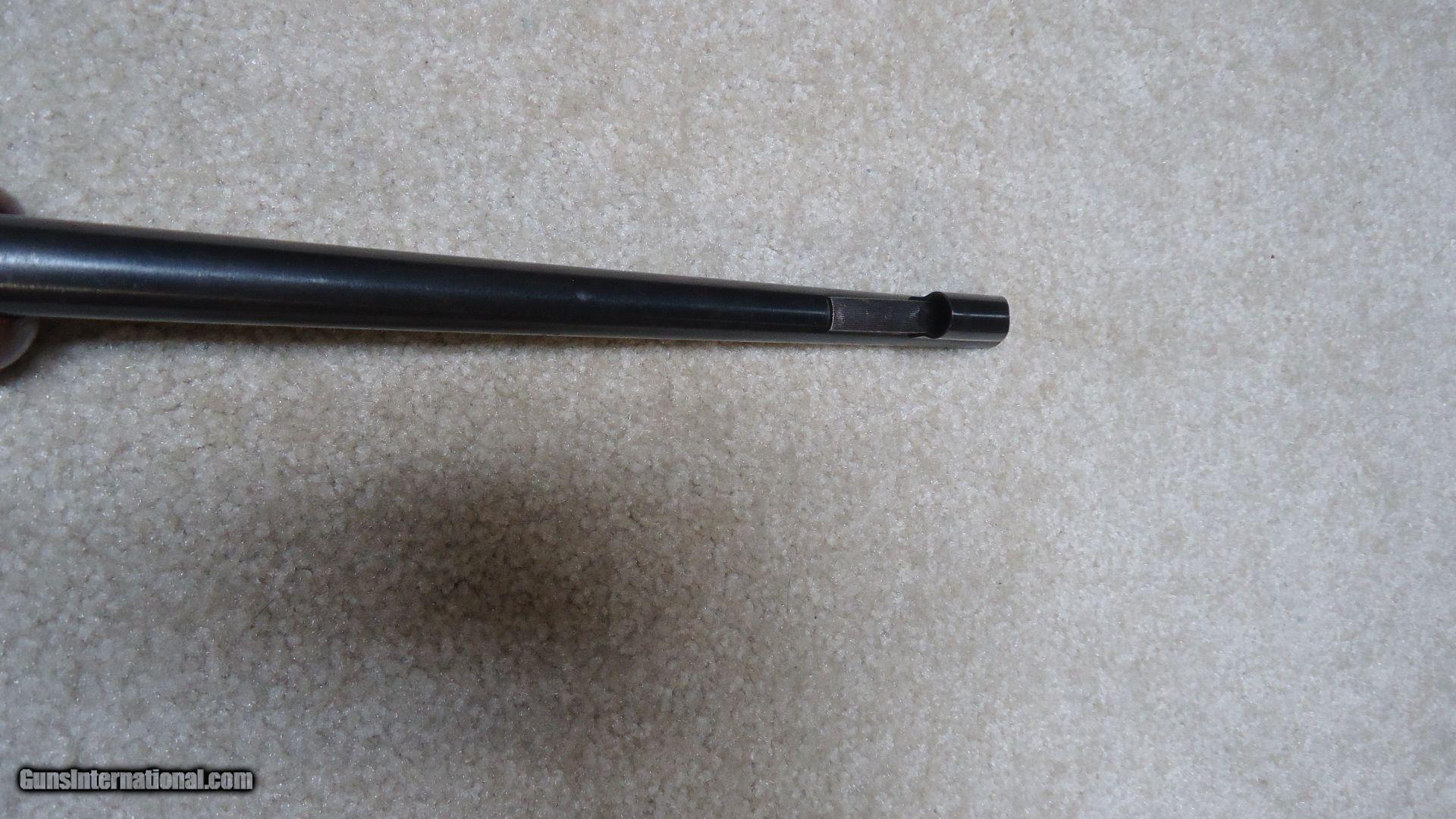 Description: MODEL 100 SEMI-AUTO RIFLE IN RARE .284 WIN. CALIBER, MADE 1967. This one came out of here in Montana and no doubt has accounted for lots of game! Excellent wood showing very light handling with almost no marks. Exc. blue on the barrel with original folding Lyman rear sight and hooded front sight. It must have had a scope mounted at one time as the factory drilled scope mount holes are lacking the filler screws and there is a light outline were a scope base was once mounted. Correct .284 marked magazine shows some blue wear. The bottom of the aluminum trigger guard has a slight ding and wear to the anodized blue/black finish. Overall a nice rifle in a great caliber (I’m a fan of the .284 and have used it quite a bit here in Montana for deer and antelope). SOLD Curio/Relic: Yes Manufacturer: Winchester Model: MODEL 100 Serial Number: 192XXX Caliber Info: .284 WIN. Condition: FINE+ Barrels: 22 |