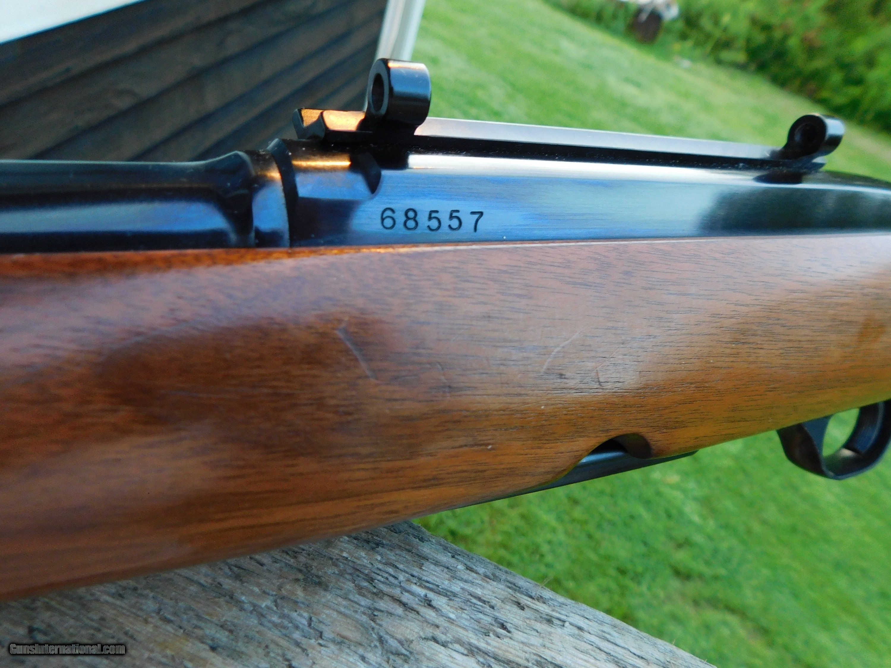 Description: SALE PENDING WALT K NY 8/27/23 Rare Rare.Find: 2d full year pruduction is this exceptional example of an almost new cond with correct original factory box with original manual and warranty card.. The rifle is a beauty; metal at approx 100% with very modest marks on wood rateda at 95%.Hard to find scarce cal . You will not likley find another like it in a lifetime. Shipping $ 65.00 IF IT DOES NOT SAY ."SALE PENDING, UNDER DEPOSIT or ON HOLD"...IT IS AVAILABLE. WE DO NOT REPLY TO INQUIRIES THAT SAY "INTERESTED IN THIS GUN" OR "IS IT AVAILABLE" IF YOU WOULD LIKE TO BUY THIS OR ANY OF OUR GUNS WE SUGGEST YOU PHONE US; WE ARE OFTEN AVAIALABLE LONG HOURS. IF YOU ARE INTERSTED IN A GUN THAT IS UNDER DEPOSIT AND WOULD LIKE TO BE NOTIFIED IF A SIMILAR GUN COMES IN DROP US A LINE AND WE WILL MAKE EFFORTS TO CONTACT YOU WHEN ONE DOES COME IN. WE HAVE OVER 2000 SALES ON ALL SITES WITH AN A+ RATING ON ALL WE ALSO KEEP AN INVENTORY OF OLDER PERIOD CORRECT SCOPES; CALL WITH NEEDS WE MOSTLY PICK VERY CLEAN AND LIGHLTY USED GUNS. WE ARE HAPPY TO TAKE CONSIGNMENT GUNS AND COLLECTIONS OR WILL BUY YOURS OUTRIGHT. WE SOMETIMES ARE EMPLOYED FOR ESTATE PURPOSES AND VALUATIONS. AT THIS TIME WE ARE ONLY ACCEPTING US POSTAL MONEY ORDERS OR BANK CHECKS FOR PAYMENT IT IS THE BUYERS RESPONSIBILITY TO GET US A COPY OF YOUR RECEIVING FFL'S LIC AND A COPY OF YOUR PHOTO ID BEFORE THE GUN SHIPS YOU MUST CALL OR CONTACT YOUR FFL.WE DO NOT CALL FOR YOU UNLESS THEY RQUIRE IT. LAYAWAY PURCHASES NOT COMPLETED ON ANY RETURNED ITEM UNLESS NOT AS DESCRIBED OR DAMAGED ARE SUBJECT TO A 10% RELISTING/RESTOCKING FEE AND MUST BE RETURNED WITH NO NEW MARKS OR SCRATCHES, SENT BACK INSURED, PRIORITY SIGNATURE REQUIRED. ALL INFORMATION CONTAINED HEREIN IS BELIEVED TO BE ACCURATE BUT IS NOT GUARANTEED. WITH ANY OLDER OR USED GUN IT SHOULD BE INSPECTED BY A GUNSMITH PRIOR TO SHOOTING. SOLD |