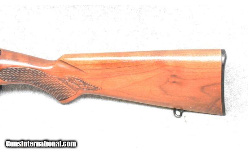Description: Winchester model 100 in .284 Win. SOLD Caliber Info: .284 Win. Metal Condition: Very good, light high edge wear and mild scattered faint handling marks. Wood Condition: Very good, with faint hanling marks and a few scuffs. Bore Condition: Bright shiny bore with sharp rifling. Barrels: 22 inch. Triggers: Single curved trigger. Stock: Walnut, basket weave press checkered, semi-pistol grip. Stock Dimensions: 14 inch LOP. Fore End: Straight, walnut, basket weave press checkered. Butt Pad: Checkered, plastic plate. Weight: 7 lbs. Sights: Ramp dovetailed bead front, flip up rear sight, factory tapped for scope mount. Extras: Comes with mag. Item Location: Kansas City, KS |
