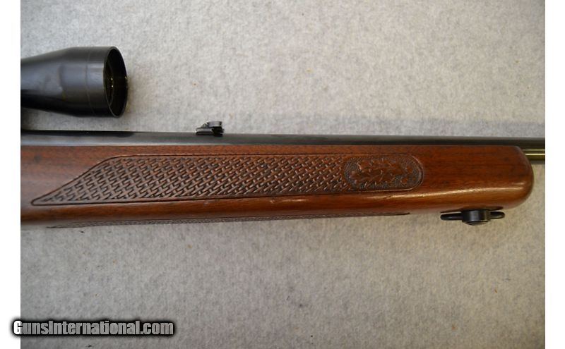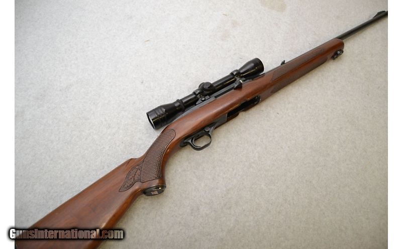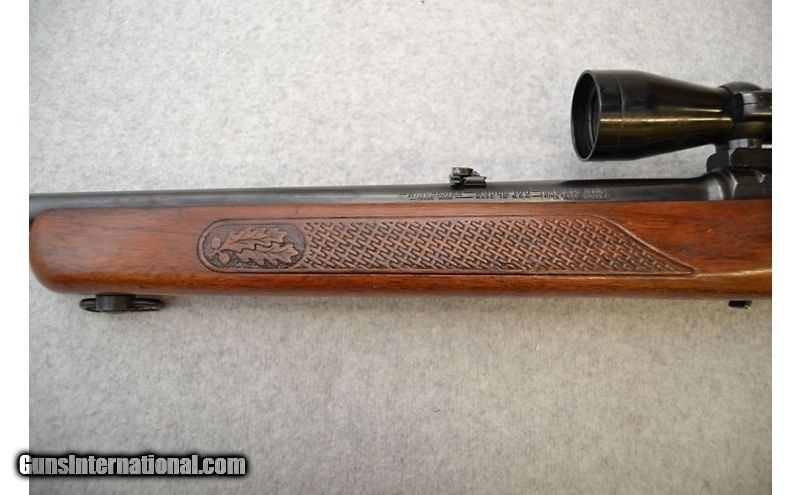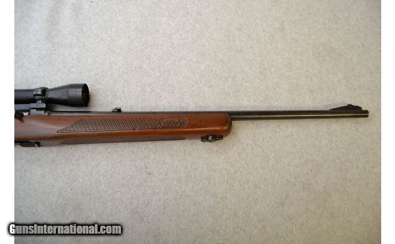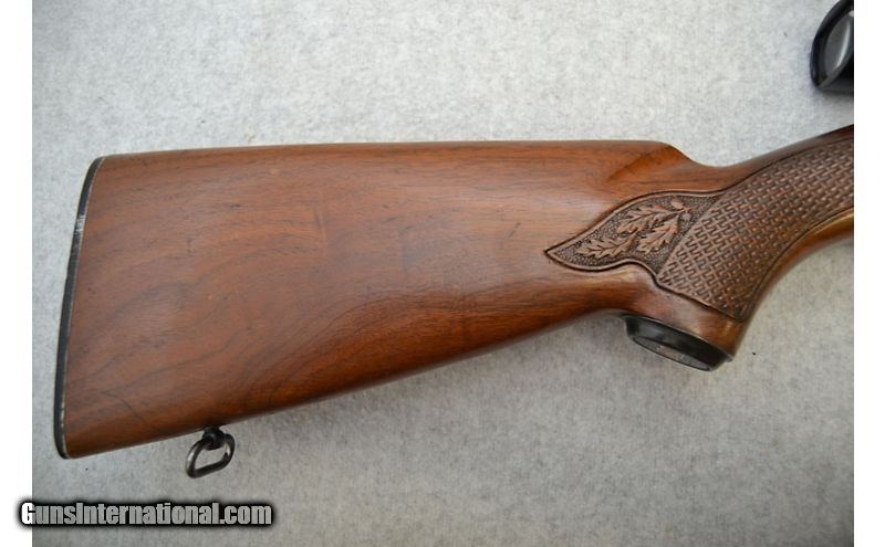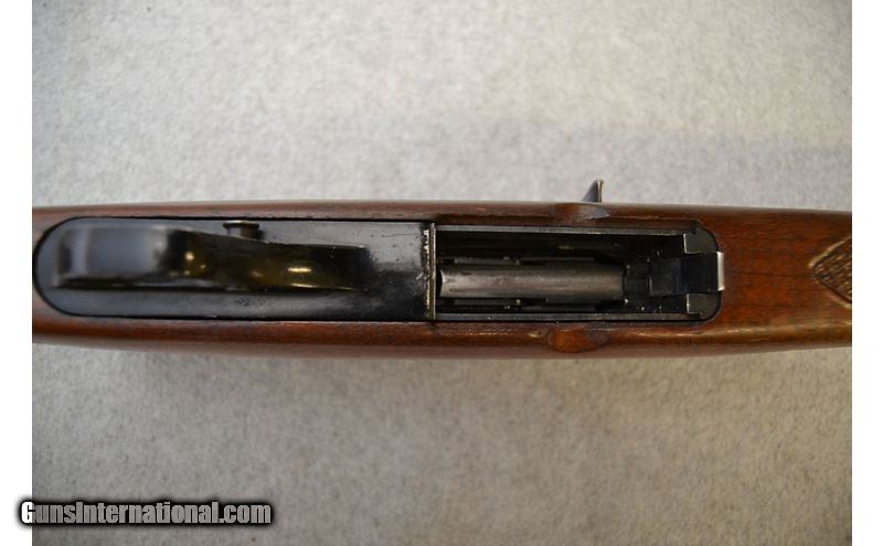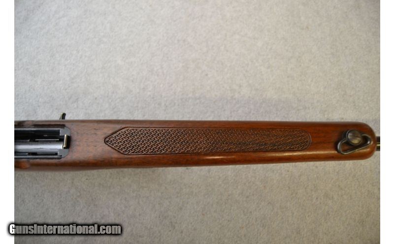 Description: Pretty good shape overall. Metal has a few patches of inactive surface corrosion and finish loss around the muzzle. Wood shows its age with a not unexpected number of handling and use marks; none of which deserve special note. .284 Winchester SOLD Chambers: Semiautomatic fed from detachable magazines. Metal Condition: Good. Wood Condition: Fair to good. Bore Condition: Excellent; sharp lands/grooves and bright healthy shine. Barrels: 22" Blued. Triggers: Wide blued metal with grooved surface. Stock Dimensions: Embossed walnut with Winchester logo pistol grip cap and 14" LOP. Fore End: Walnut with triple panel embossed checkering. Butt Pad: Black plastic plate. Weight: 8lbs Sights: Fixed front blade and flip-up rear leaf. Redfield fixed 4x scope. Chokes: N/A Item Location: Green Bay |
