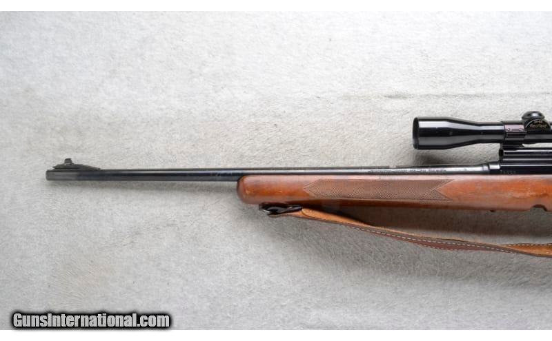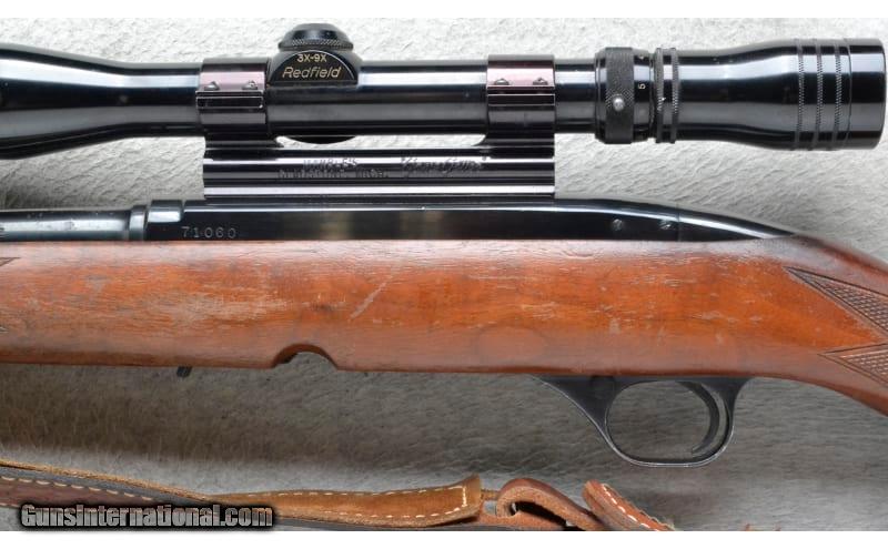 Description: This Winchester Model 100 is a right hand semi-auto rifle in .284 Winchester Cal. It has a 22 inch barrel. A raised blade front sight. It is outfitted with a Redfield 3x-9x Scope. The butt stock is a checkered grip walnut pistol grip with a black steel cap. The forearm is a checkered grip walnut. Serial Number 71060. .284 Winchester SOLD Chambers: Detachable Magazine. Metal Condition: Fair. Barrel has a lot of freckling/small rust spots. Wood Condition: Fair. Many handling/use marks. Some surface finish wear. Bore Condition: Very Good. Barrels: 22 inch barrel. Stock Dimensions: LOP 13 3/4 inches. Fore End: Checkered grip walnut. Butt Pad: Checkered black plate. Weight: 8 lb. 6 oz. Sights: Raised blade front. Redfield 3x-9x Scope. Item Location: Richfield, WI |