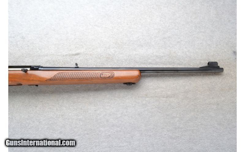 Description: This Winchester Model 100 is a right hand semi-automatic rifle in .308 Win. Cal. It has a 22 inch barrel. A hooded front blade sight and a folding adjustable notch middle sight. It is drilled and tapped for a scope mount. The walnut pistol grip stock has a basket weave and oak leaf grip pattern butt and forearm. SOLD Caliber Info: .308 Win. Chambers: Semi-Auto 4 round magazine. Metal Condition: Very Good. Wood Condition: Good. Has multiple handling marks. Bore Condition: Excellent. Barrels: 22 inch blued barrel. Triggers: Grooved. Stock: Basket weave and oak leaf pattern walnut pistol grip with a Winchester black steel cap. Stock Dimensions: LOP 13 3/4 inches. Fore End: Basket weave and oak leaf pattern grip walnut. Butt Pad: Checkered black plate. Weight: 7 lbs. 2 oz. Sights: Hooded front blade. Folding adjustable notch middle. Drilled and tapped for a scope mount. Extras: Sling swivels. Item Location: Richfield, WI |