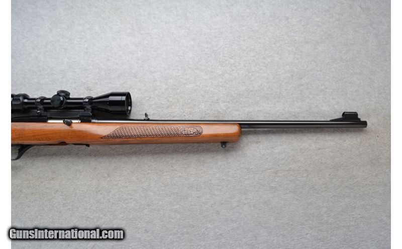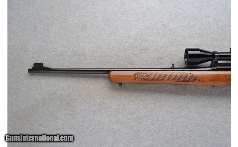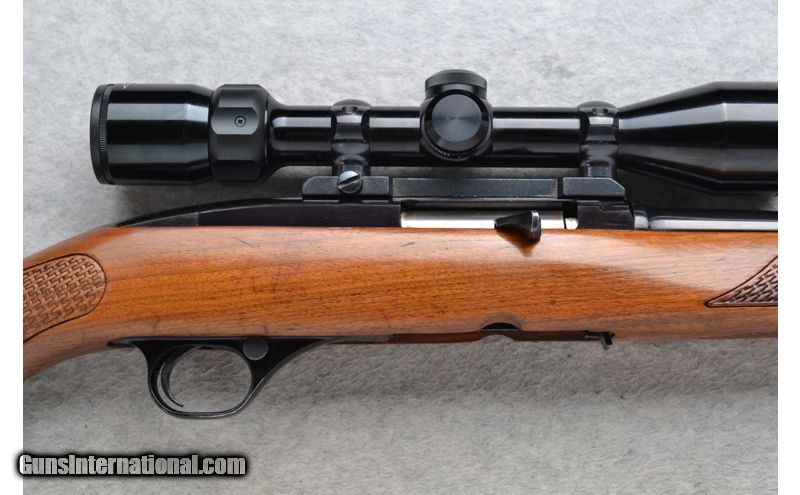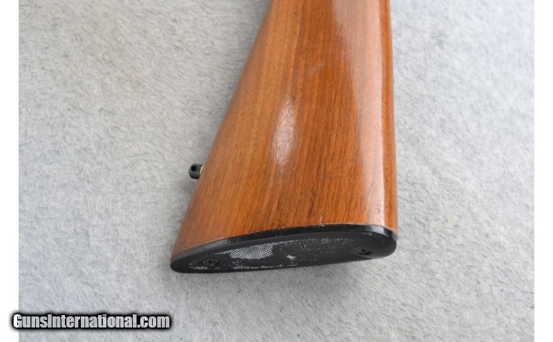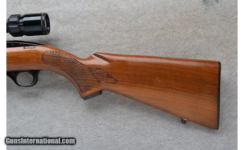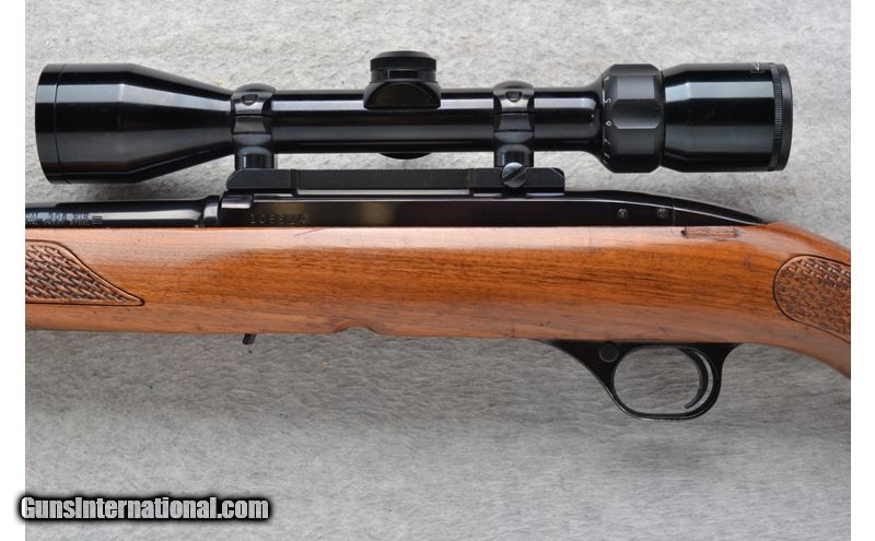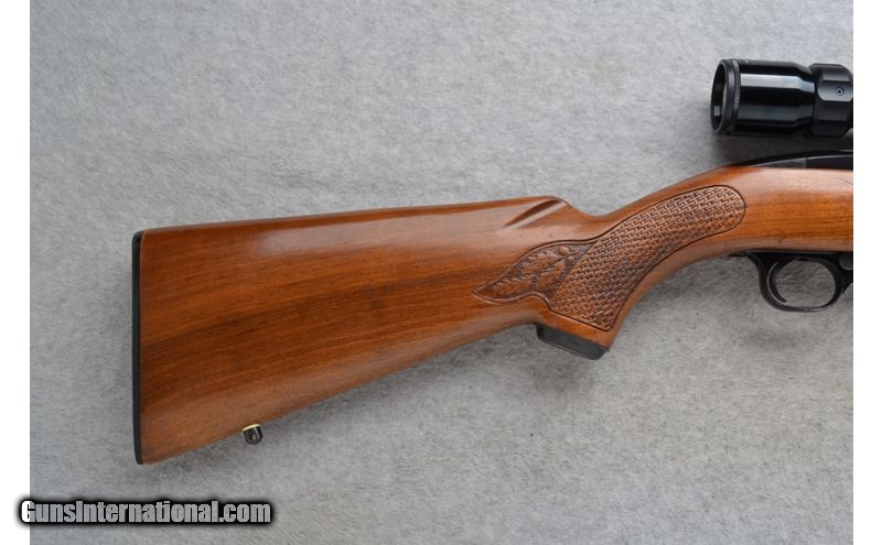 Description: This Winchester Model 100 is a right hand semi-auto rifle in .308 Win. Cal. It has a 22 inch barrel. A hooded front and folding adjustable middle sight. It is outfitted with a Bushnell Scope. The stock is a basket weave and oak leaf pattern grip walnut pi SOLD Chambers: Semi-Auto 4 round detachable magazine. Metal Condition: Excellent. Wood Condition: Very good with a few handling / use marks. Barrels: 22 inch blued. Triggers: Grooved. Stock Dimensions: LOP 13 3/4 inches. Fore End: Basket weave and oak leaf pattern grip walnut. Butt Pad: Checkered black plate. Sights: Bushnell Contrast Optics 3-9 Scope. Hooded front blade. Folding adjustable middle. Item Location: Richfield, WI |