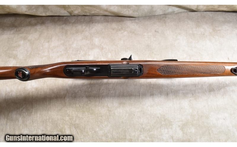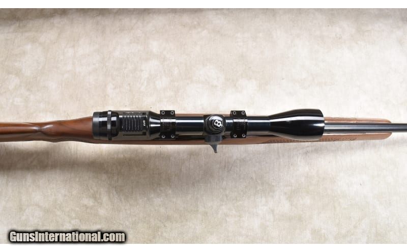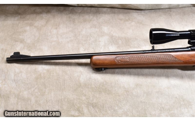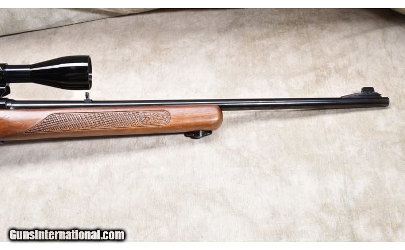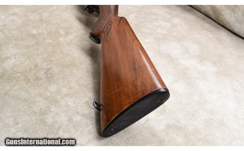 Description: Nice little hunting rifle for heavy woods country. The features include basketweave/oak leaf checkering, "iron" sights, and scope. .308 Winchester SOLD Chambers: 4 rounds Metal Condition: "Very good. A bit of blue wear around the muzzle, and a couple very minor handling marks. Wood Condition: Very good. There are a few light scratches. Bore Condition: Shiny and bright with good rifling. Barrels: 22 inches Triggers: Factory trigger Stock Dimensions: LOP: 13-3/4 inches. Butt Pad: Black plate Weight: 8 lb - 4 oz. with scope Sights: "Bead and folding leaf open sights, Banner scope with crosshair light. Item Location: Rogers |