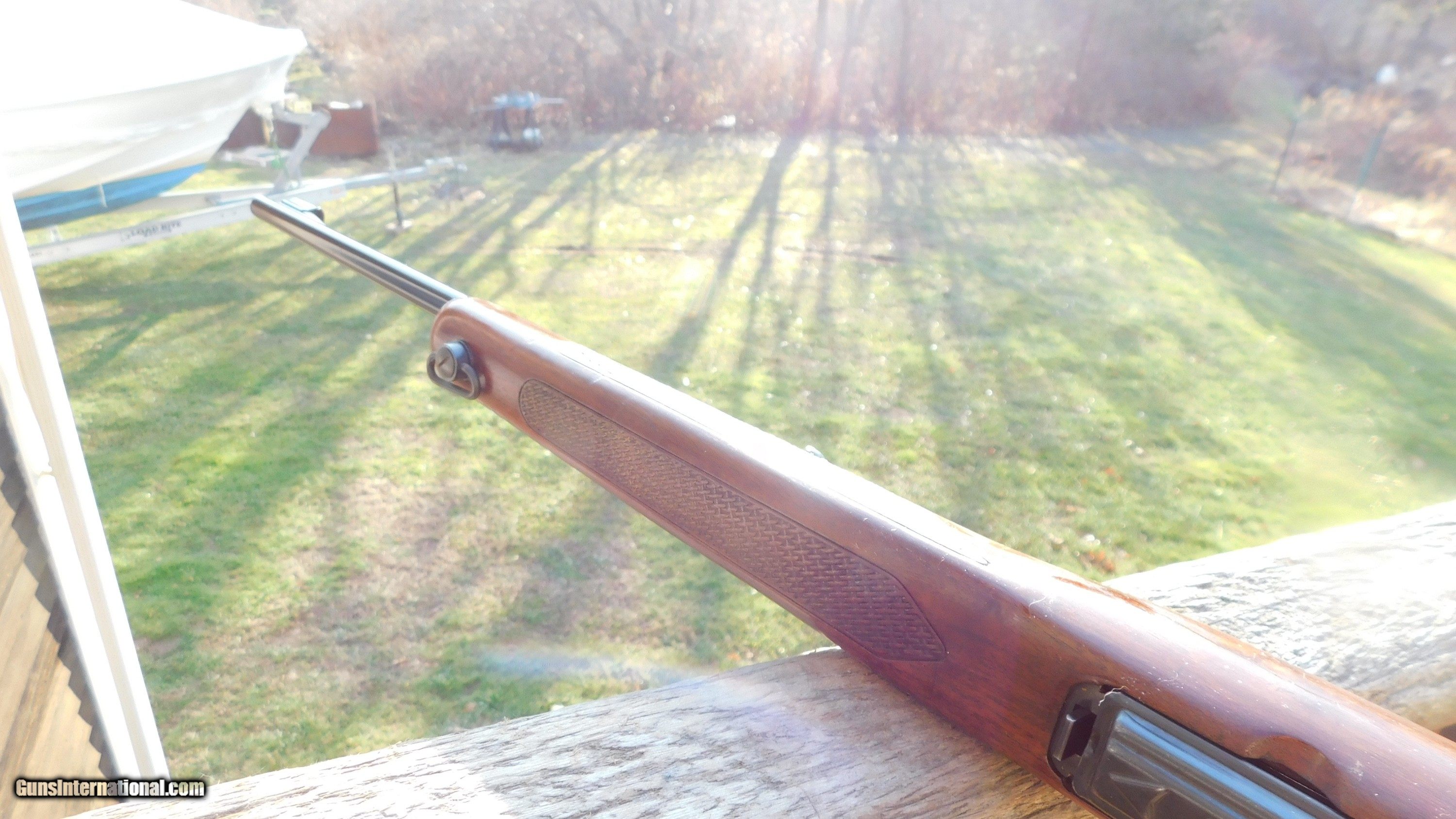 Description: SALE PENDING SCOTT A. MN 12/18/23 In our location in the densly wooded North Eastern US not unlke heavy cover in the South, South East. Eastern Tex and dark timber in the West the ability to have fast follow up shots without taking your eye out of the sight picture can make up the difference between lost and wounded game and a recoverd animal humanely killed. We often used these excellent rifles, as well as the Rem 742 series (see our other items...we have those as well), the Winchesters being a little lighter than the Rem counterparts. My deer hunting mentor whilc growing up (an old Mainer) when asked about the accuracy of the model 100's said ...you can hit an artificlal lemon at 100 yards....Ha ...we found this to be true. Althougth a post 64 gun the polish and deep rich blue on this gun was more typical of the excellence found at Winchester from prior eras. Other than a professionall repaired split left side of stock the gun is otherwise at or near 95% with a perfect bore and stil retains front site hood and factory fold down rear. It also has a Weaver type base for easy scope mounting (we have many excellent used Leupolds and other scopes). This gun was made in 1966 which as a very low production year ...less than half of produton in most other years Shipping $ 59.00 IF IT DOES NOT SAY ."SALE PENDING, UNDER DEPOSIT or ON HOLD"...IT IS AVAILABLE. WE DO NOT REPLY TO INQUIRIES THAT SAY "INTERESTED IN THIS GUN" OR "IS IT AVAILABLE" IF YOU WOULD LIKE TO BUY THIS OR ANY OF OUR GUNS WE SUGGEST YOU PHONE US; WE ARE OFTEN AVAIALABLE LONG HOURS. IF YOU ARE INTERSTED IN A GUN THAT IS UNDER DEPOSIT AND WOULD LIKE TO BE NOTIFIED IF A SIMILAR GUN COMES IN DROP US A LINE AND WE WILL MAKE EFFORTS TO CONTACT YOU WHEN ONE DOES COME IN. WE HAVE OVER 2000 SALES ON ALL SITES WITH AN A+ RATING ON ALL WE ALSO KEEP AN INVENTORY OF OLDER PERIOD CORRECT SCOPES; CALL WITH NEEDS WE MOSTLY PICK VERY CLEAN AND LIGHLTY USED GUNS. WE ARE HAPPY TO TAKE CONSIGNMENT GUNS AND COLLECTIONS OR WILL BUY YOURS OUTRIGHT. WE SOMETIMES ARE EMPLOYED FOR ESTATE PURPOSES AND VALUATIONS. AT THIS TIME WE ARE ONLY ACCEPTING US POSTAL MONEY ORDERS OR BANK CHECKS FOR PAYMENT IT IS THE BUYERS RESPONSIBILITY TO GET US A COPY OF YOUR RECEIVING FFL'S LIC AND A COPY OF YOUR PHOTO ID BEFORE THE GUN SHIPS YOU MUST CALL OR CONTACT YOUR FFL.WE DO NOT CALL FOR YOU UNLESS THEY RQUIRE IT. LAYAWAY PURCHASES NOT COMPLETED ON ANY RETURNED ITEM UNLESS NOT AS DESCRIBED OR DAMAGED ARE SUBJECT TO A 10% RELISTING/RESTOCKING FEE AND MUST BE RETURNED WITH NO NEW MARKS OR SCRATCHES, SENT BACK INSURED, PRIORITY SIGNATURE REQUIRED. ALL INFORMATION CONTAINED HEREIN IS BELIEVED TO BE ACCURATE BUT IS NOT GUARANTEED. WITH ANY OLDER OR USED GUN IT SHOULD BE INSPECTED BY A GUNSMITH PRIOR TO SHOOTING. SOLD |