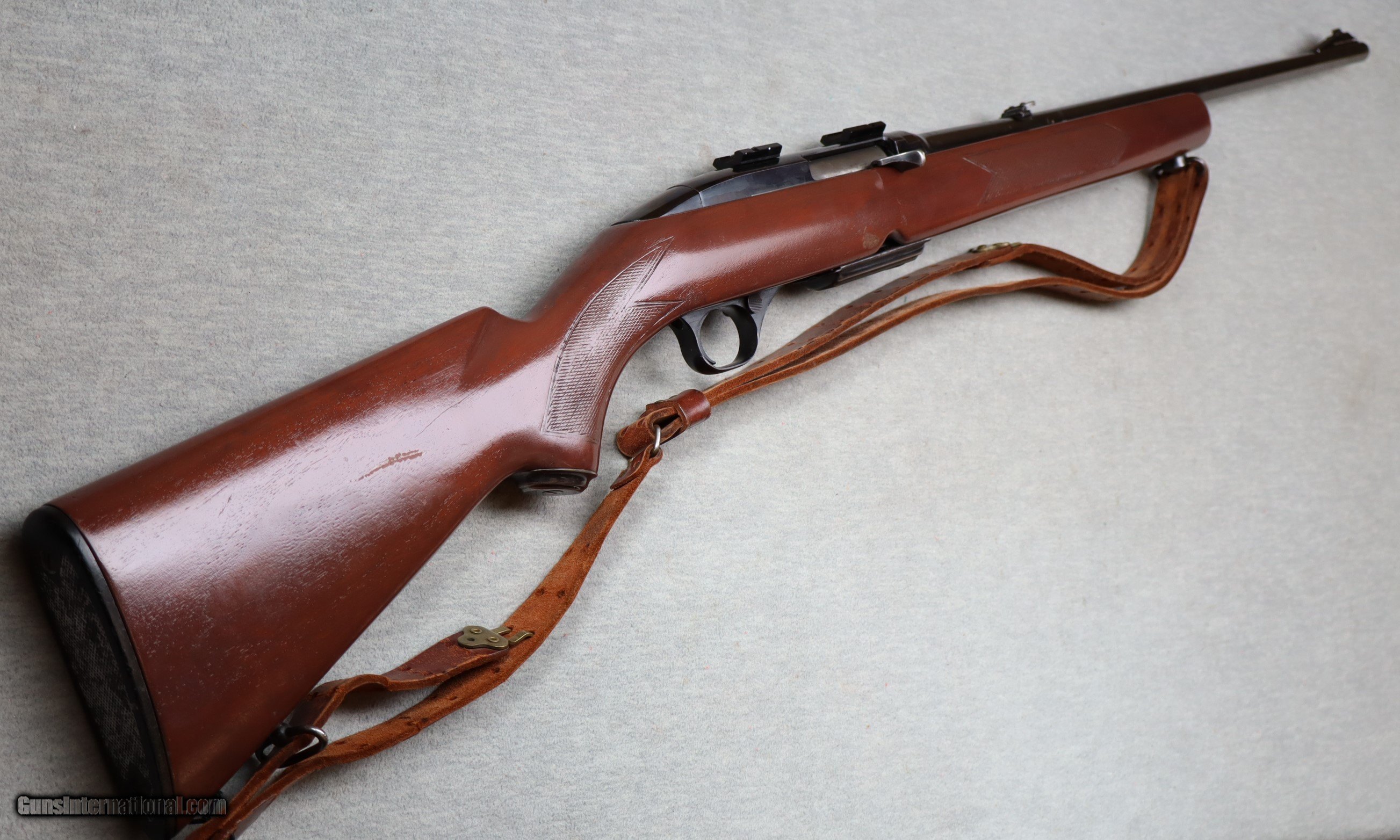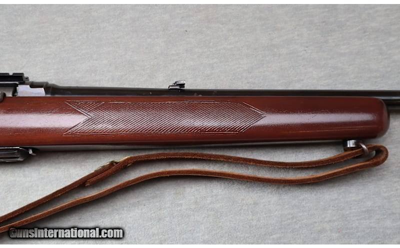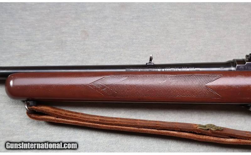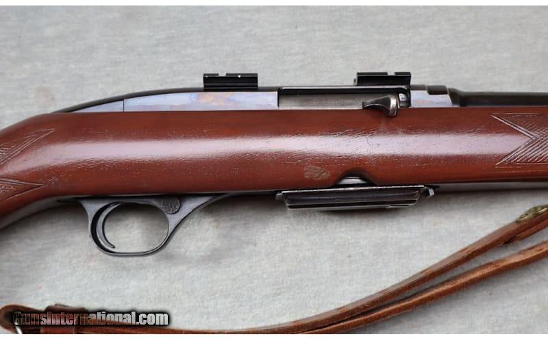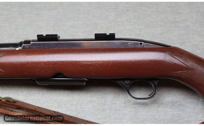 Very good metal with light wear & small scratches, stock is excellent, comes with one mag .308 caliber semi auto rifle 22" barrel, blued finish, factory iron sights & scope mounts installed. Lightly checkered gloss finished wood stock with decorative gripcap, Winchester butt plate and leather sling. .308 Winchester