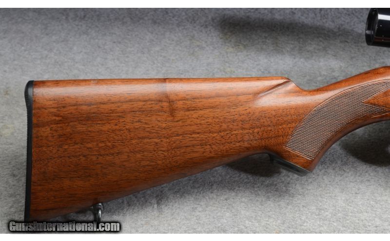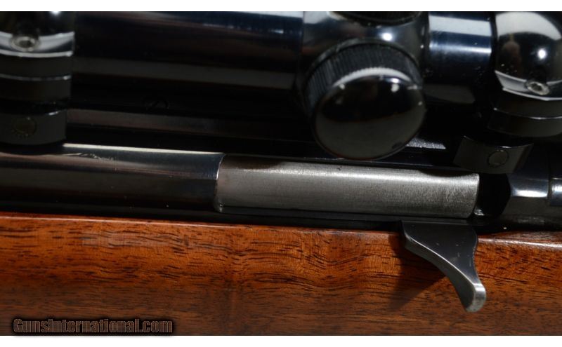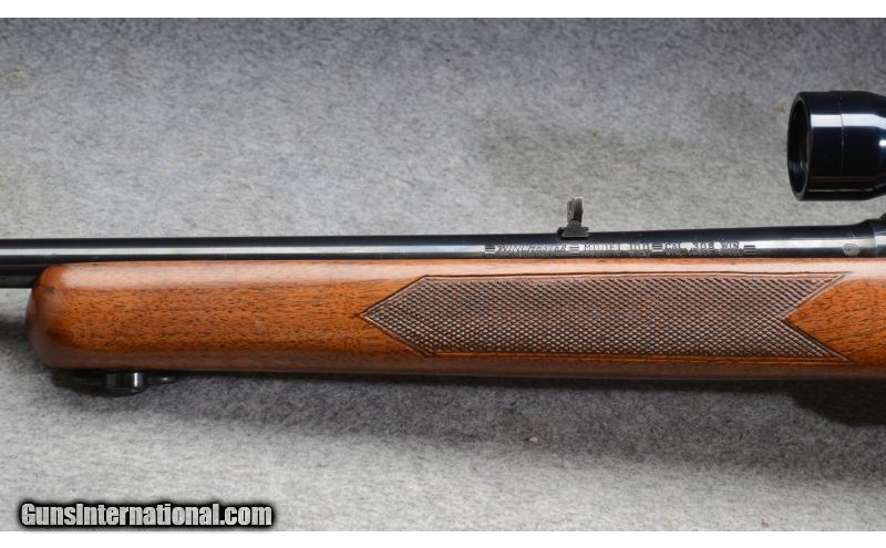 Description: The firing pin has been replaced per Winchester record. SOLD Curio/Relic: Yes Manufacturer: The year of manufacture for serial number 9425 is 1961. Caliber Info: .308 Winchester Metal Condition: Very good due some light handling marks and wear at the muzzle. Wood Condition: Very good condition with a few small scratches. Bore Condition: Bright and shiny . Barrels: 22 Inch - blued Stock: Checkered walnut with pistol grip and steel grip cap Stock Dimensions: 13 - 3/4 Inch LOP Butt Pad: Black 'ebony' plate Weight: 8 lb. - 3 oz. as shown with scope Sights: Gold bead and folding leaf open sights. Drilled and tapped for scope. Outfitted with Simmons 1.5-4.5x23 scope. Extras: Scope, one magazine total Item Location: Rogers,, MN |